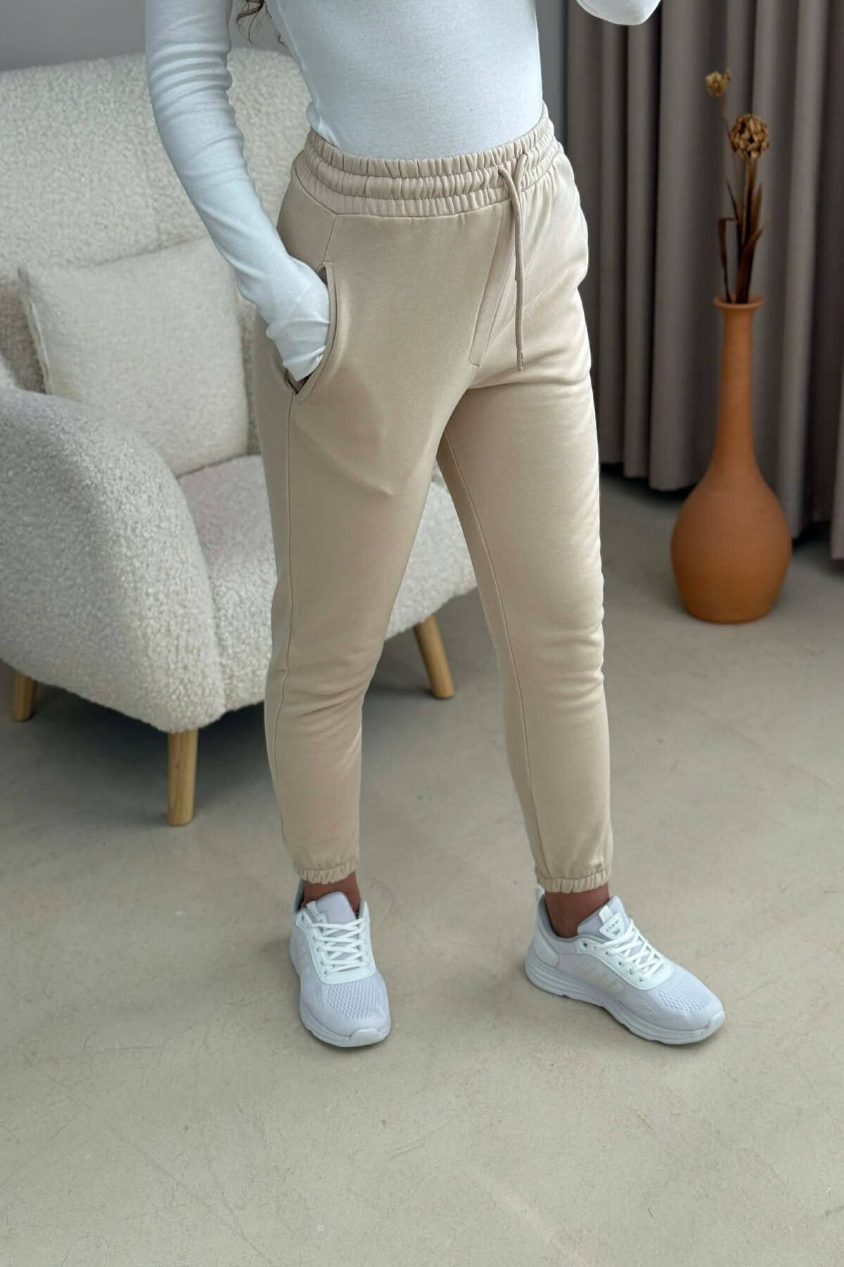 SET NJË NGJYRËSH CROP+PANTALLONA PËR FEMRA NË NGJYRË BEZHË