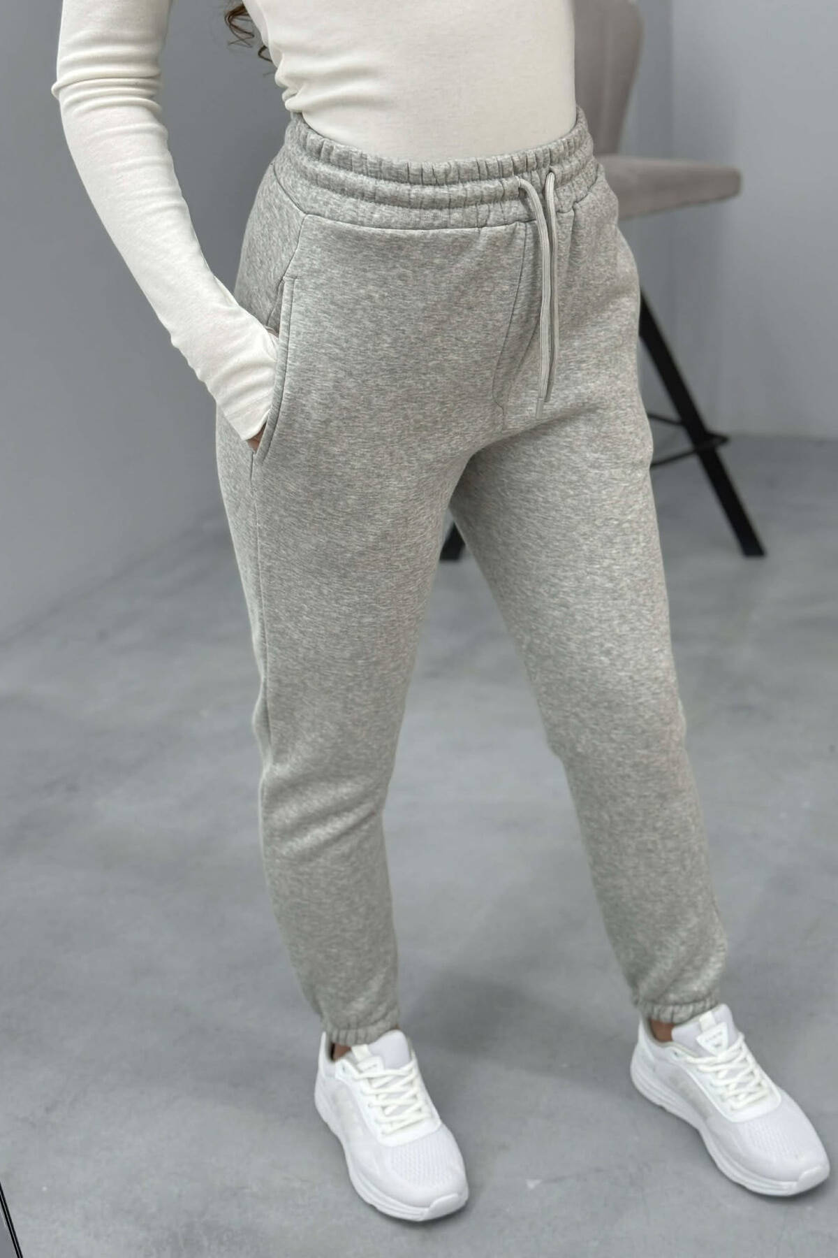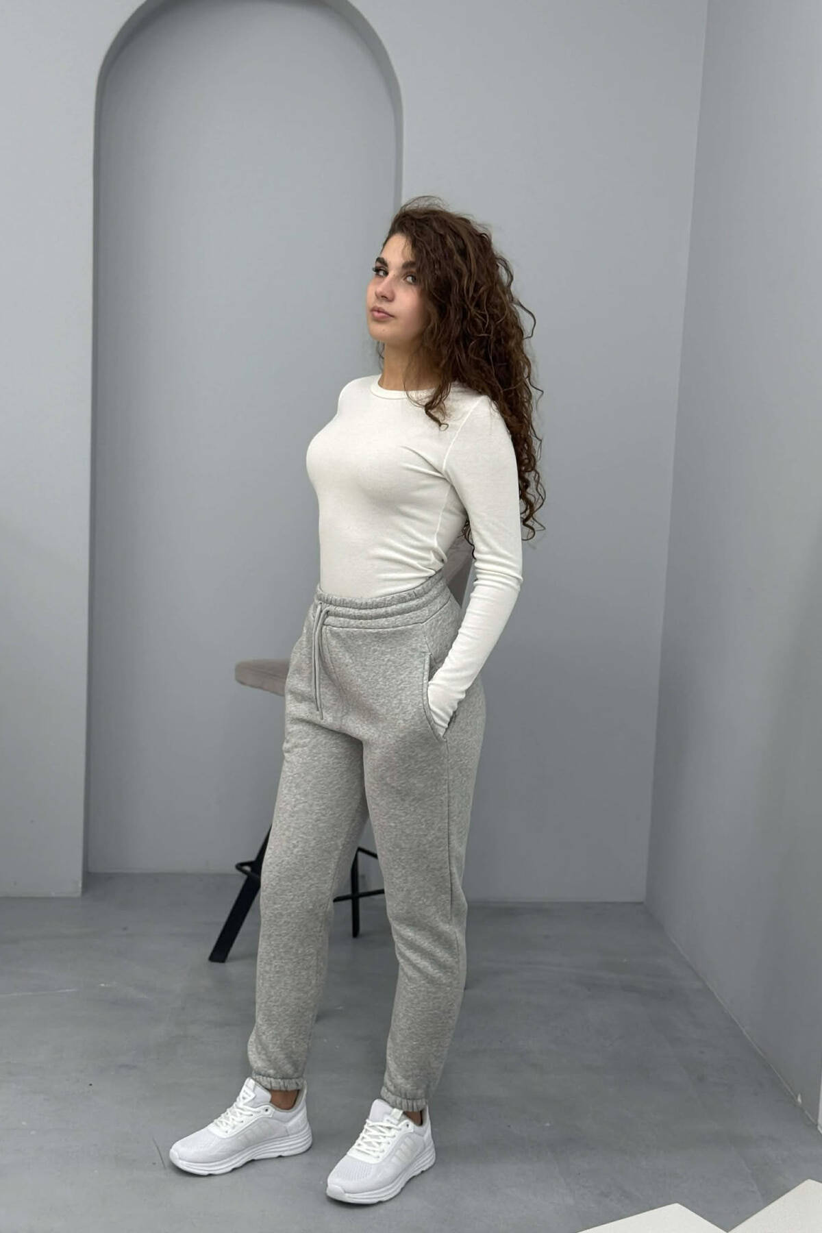 TUTA NJË NGJYRËSHE ME PUSH PËR FEMRA NË NGJYRË GRI TË ZBARDHUR