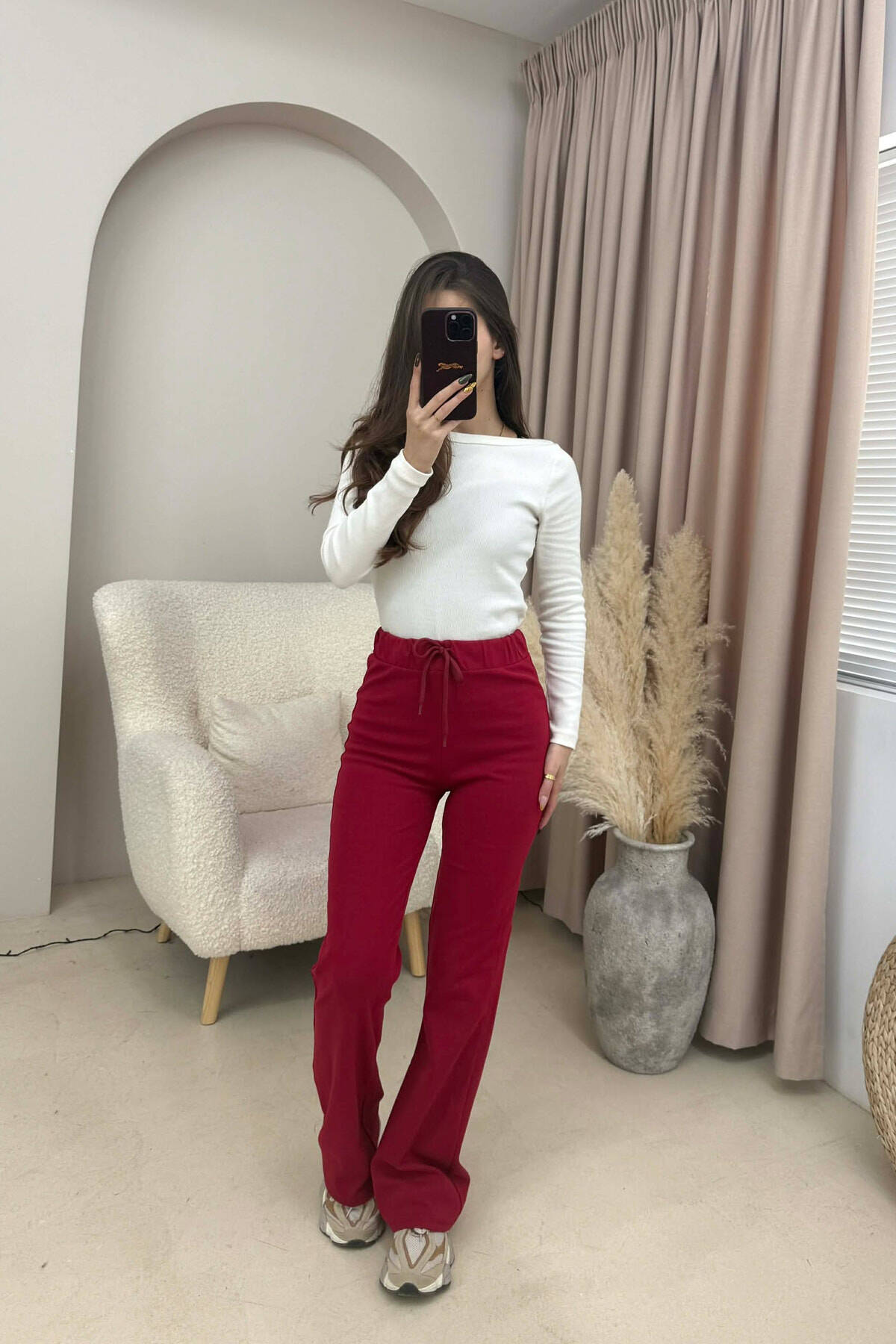 TUTA NJËNGJYRËSHE ELASTIKE NË BELI PËR FEMRA NË NGJYRË TË KUQE
