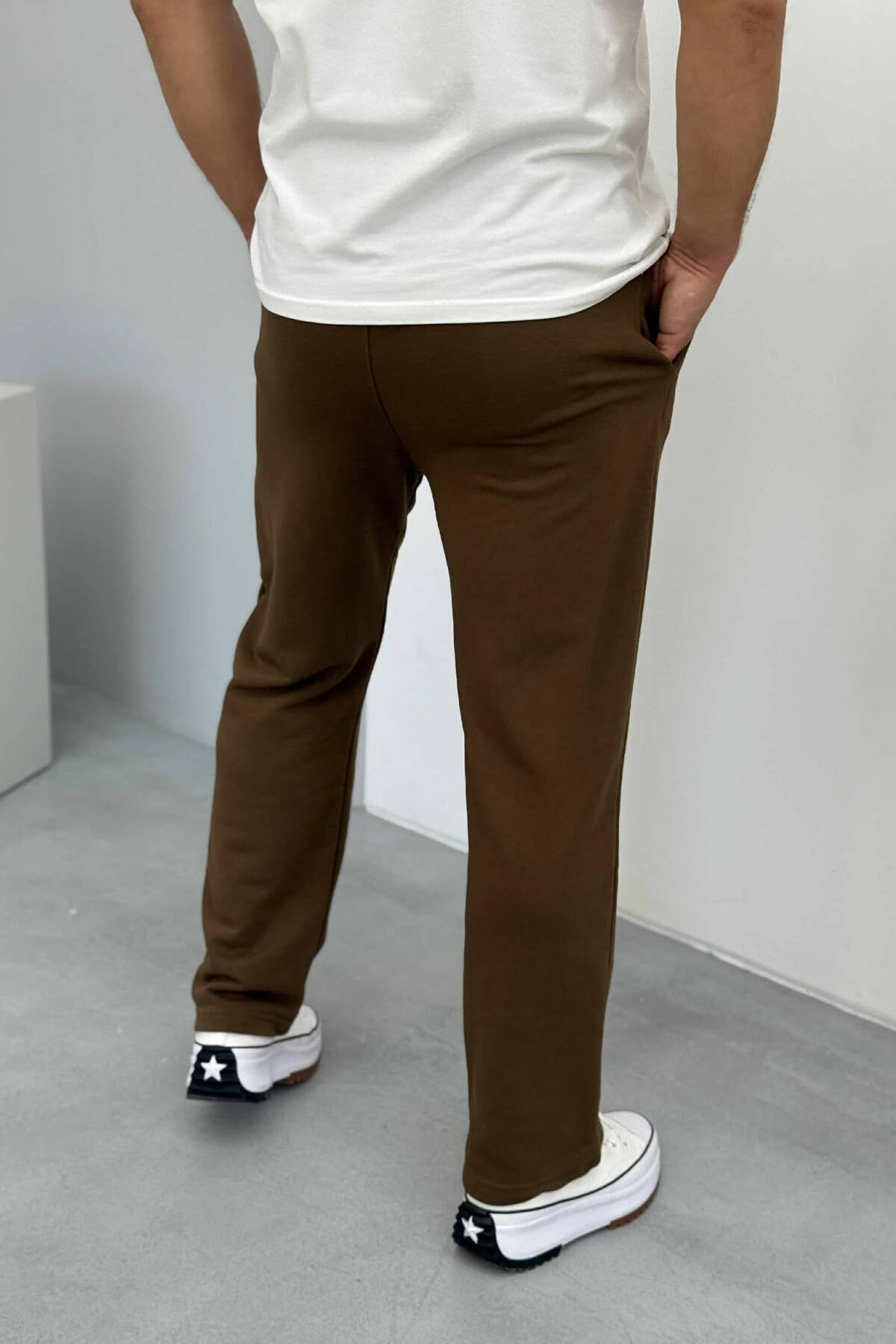 TUTA TË THJESHTA NJË NGJYRËSHE ELASTIKE NË BELI PËR MESHKUJ NË NGJYRËN KAFE