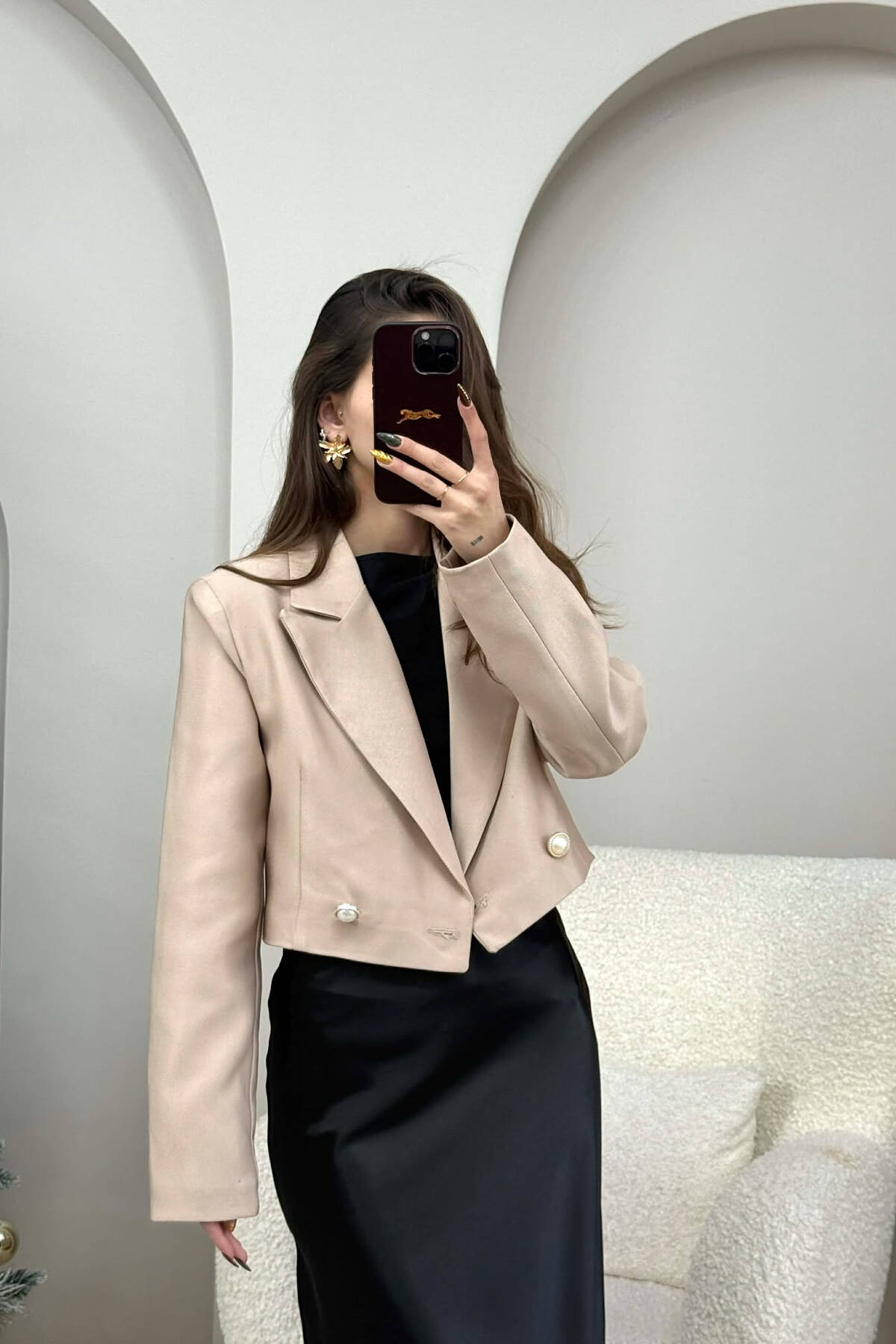 TWO BUTTONS CROPPED WOMEN JACKET BEIGE/BEZHE