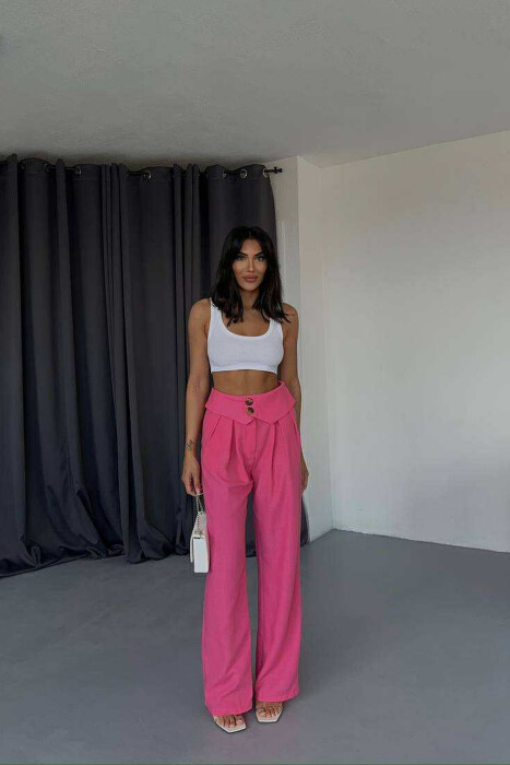 TWO BUTTONS DETAIL WIDE LEG WOMEN TROUSERS PINK/ROZE
