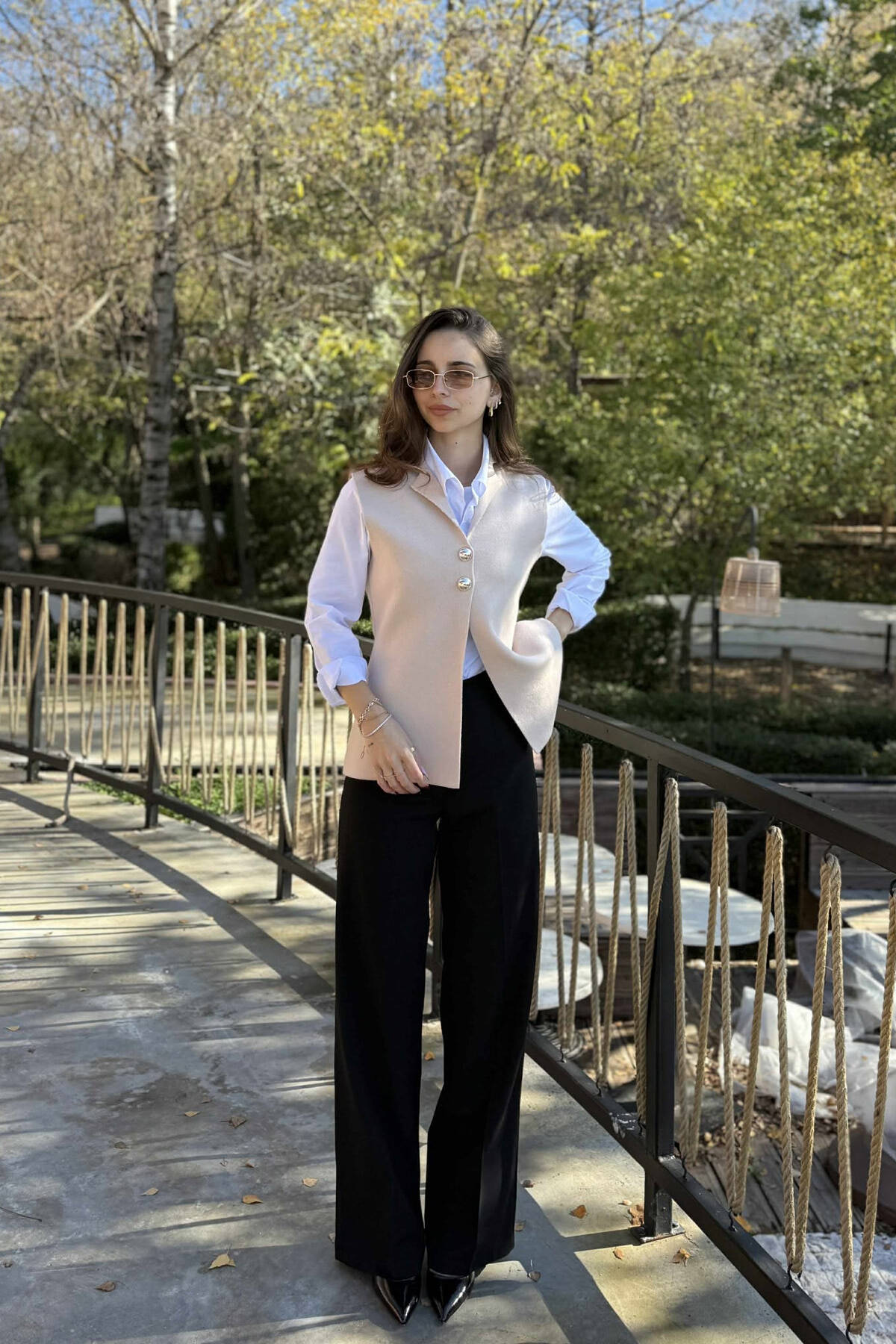 TWO BUTTONS ONE COLOR WOMEN VEST BEIGE/BEZHE