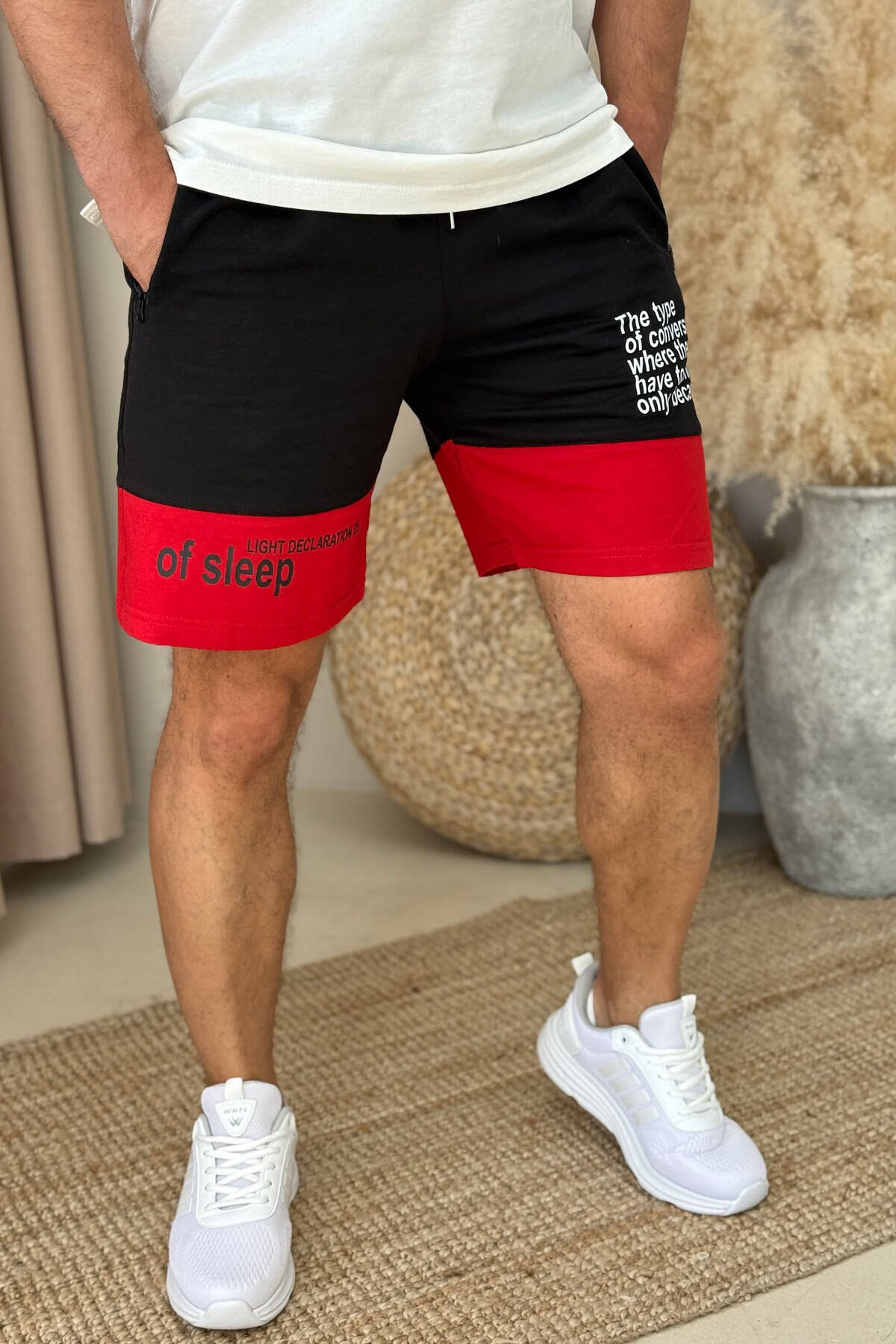 TWO COLOR FRONT WRITTING MEN SHORTS BLACK-RED/ZEKU