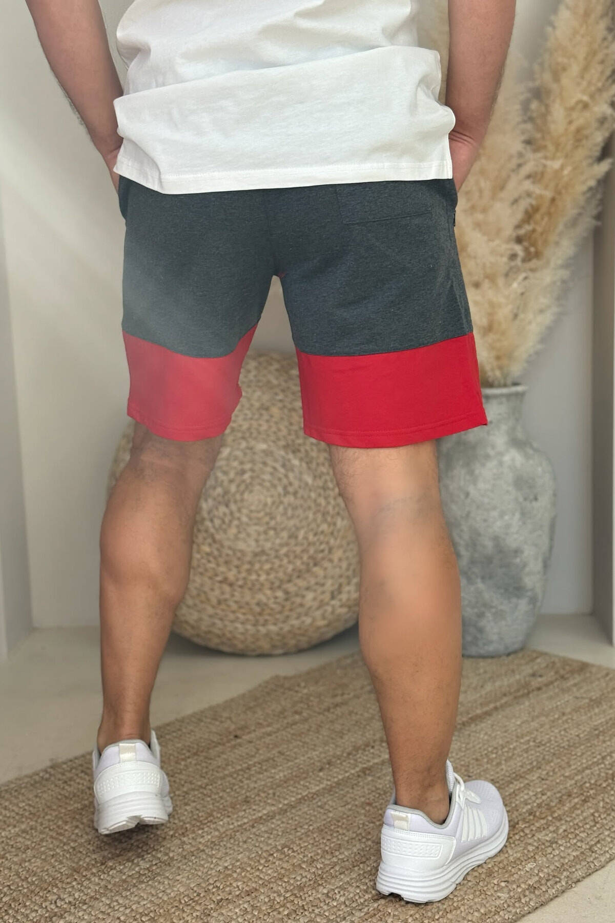 TWO COLOR FRONT WRITTING MEN SHORTS DARK GREY+RED/GEEKU