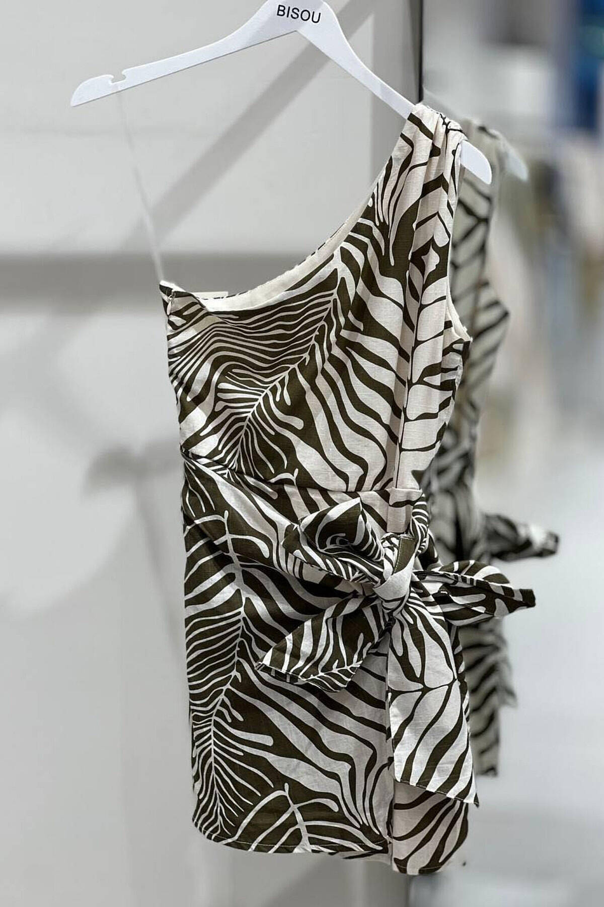 ONE COLOR STONE DETAILS ONE SHOULDER OFF WOMAN DRESS BROWN/KAFE
