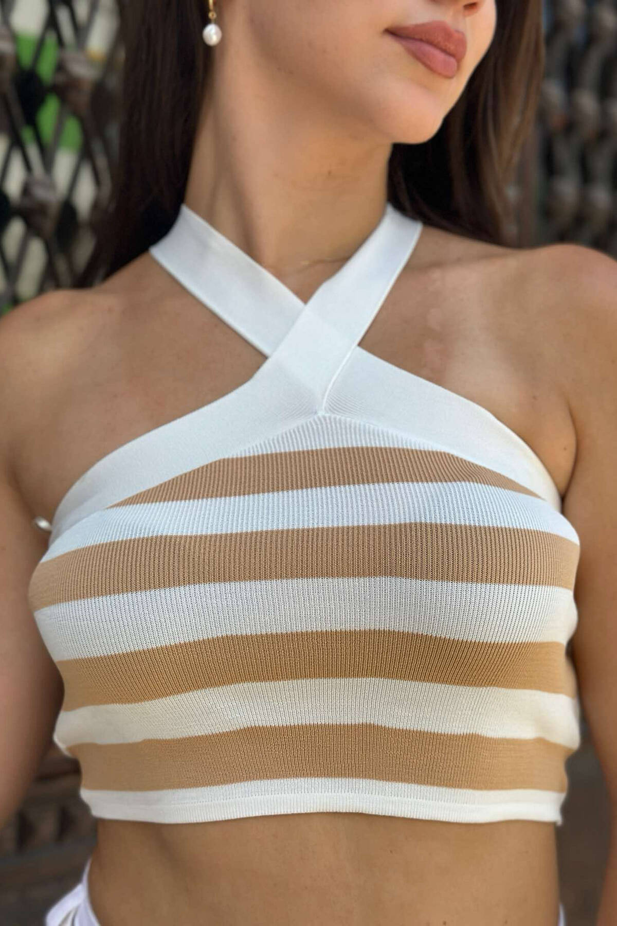 TWO COLORS STRAPS WOMAN TOP BEIGE/BEZHE