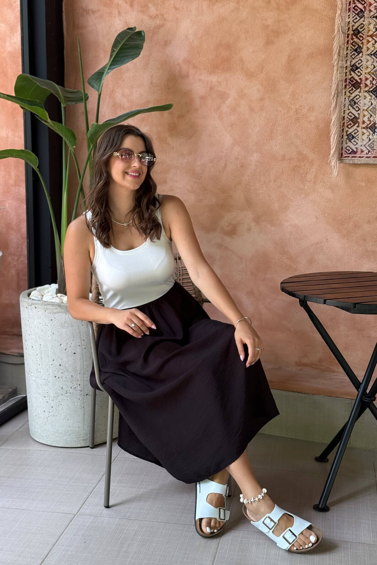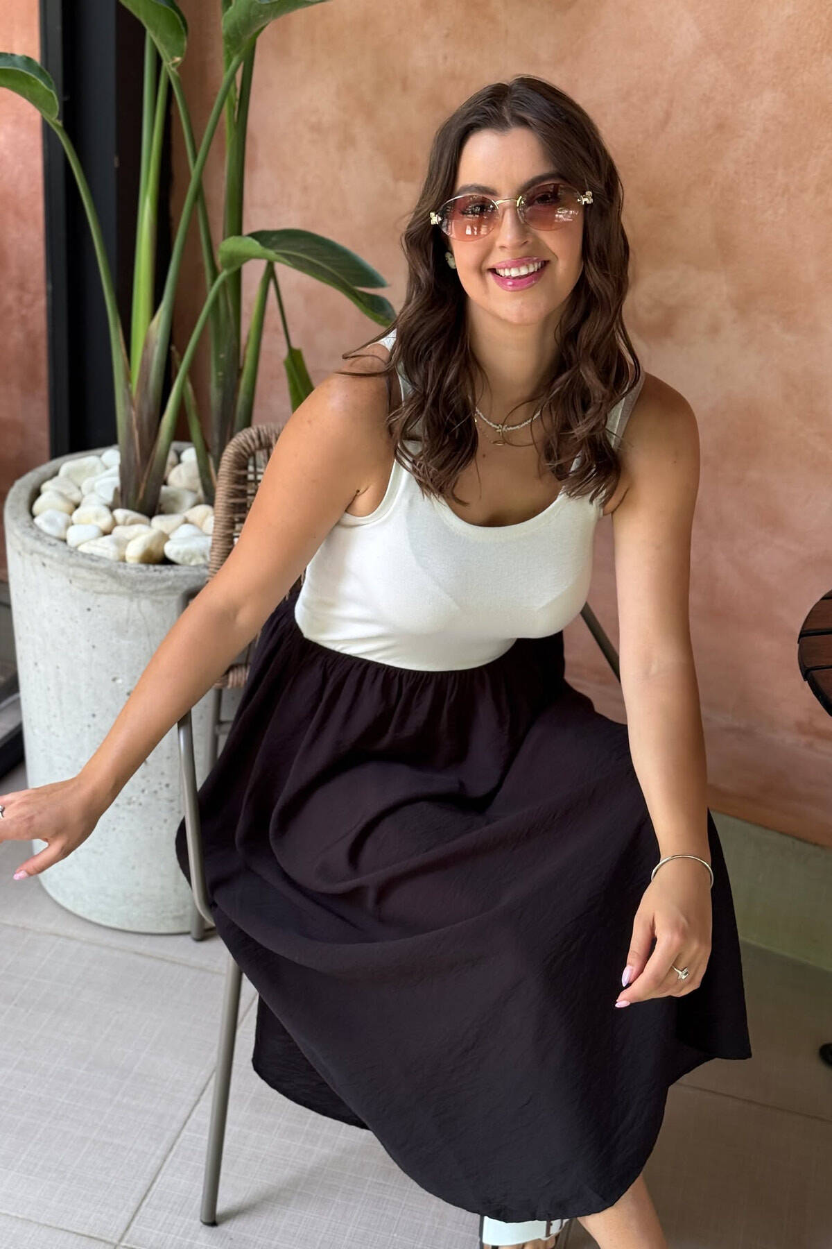 TWO COLORS THICK STRAPS LONG WOMEN DRESS WHITE-BLACK/BAZE