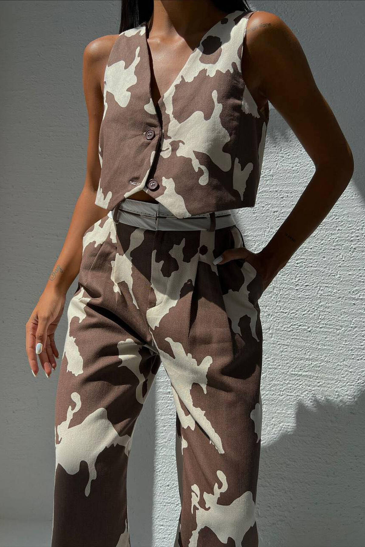 TWO DIFFERENT COLORS VEST+TREOSERS WOMAN SET BROWN/KAFE
