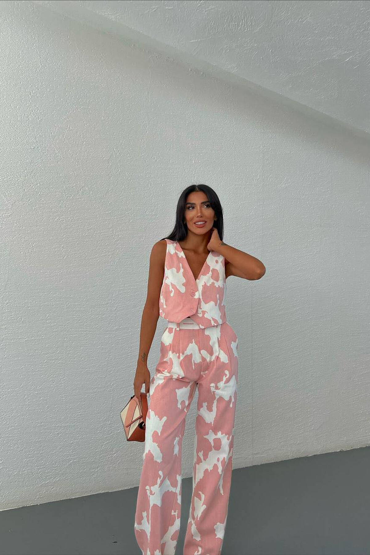 TWO DIFFERENT COLORS VEST+TREOSERS WOMAN SET POWDER/PUDER