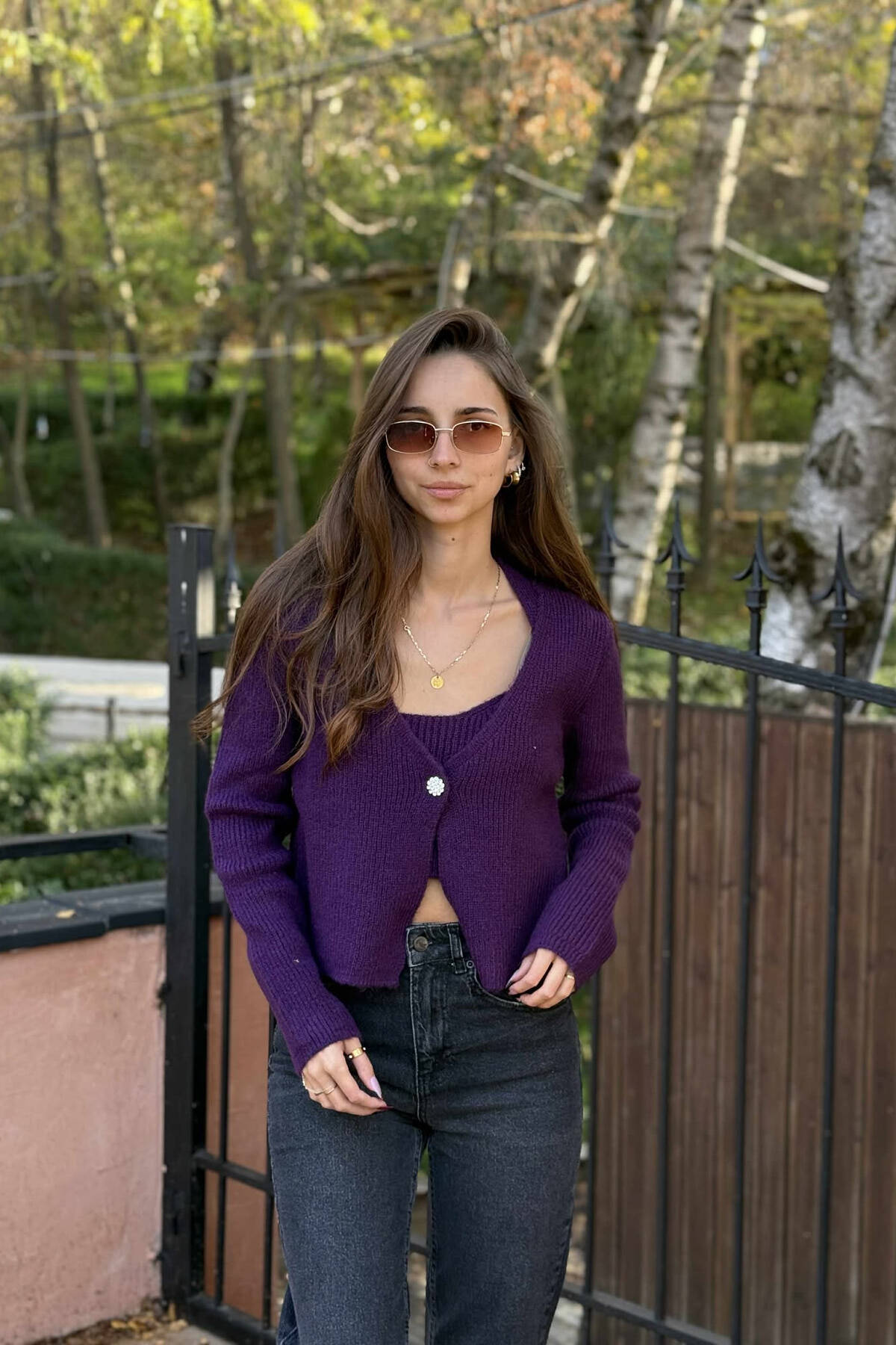 TWO IN ONE SIMPLE WOMEN CARDIGAN+TANK TOP PURPLE/LEJLA