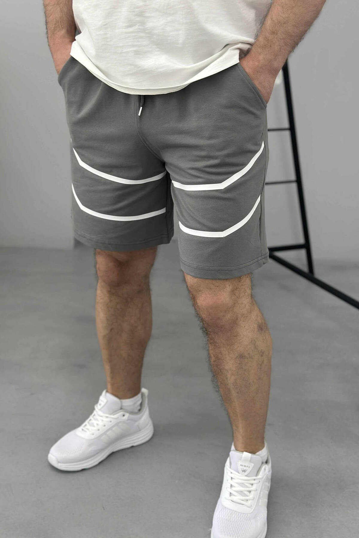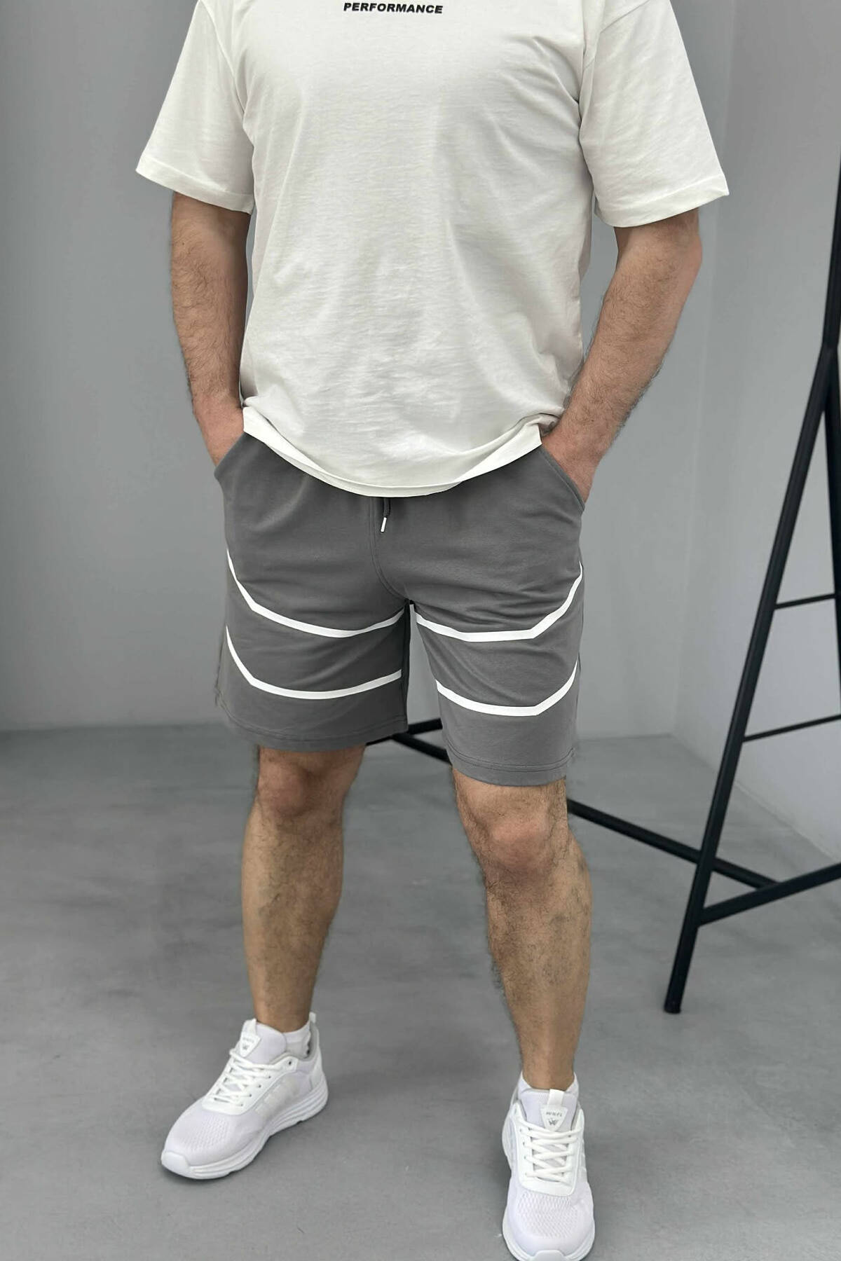PANTALLONA TË SHKURTRA ME VIJA PËR MESHKUJ NË NGJYRËN GRI E ERRËT