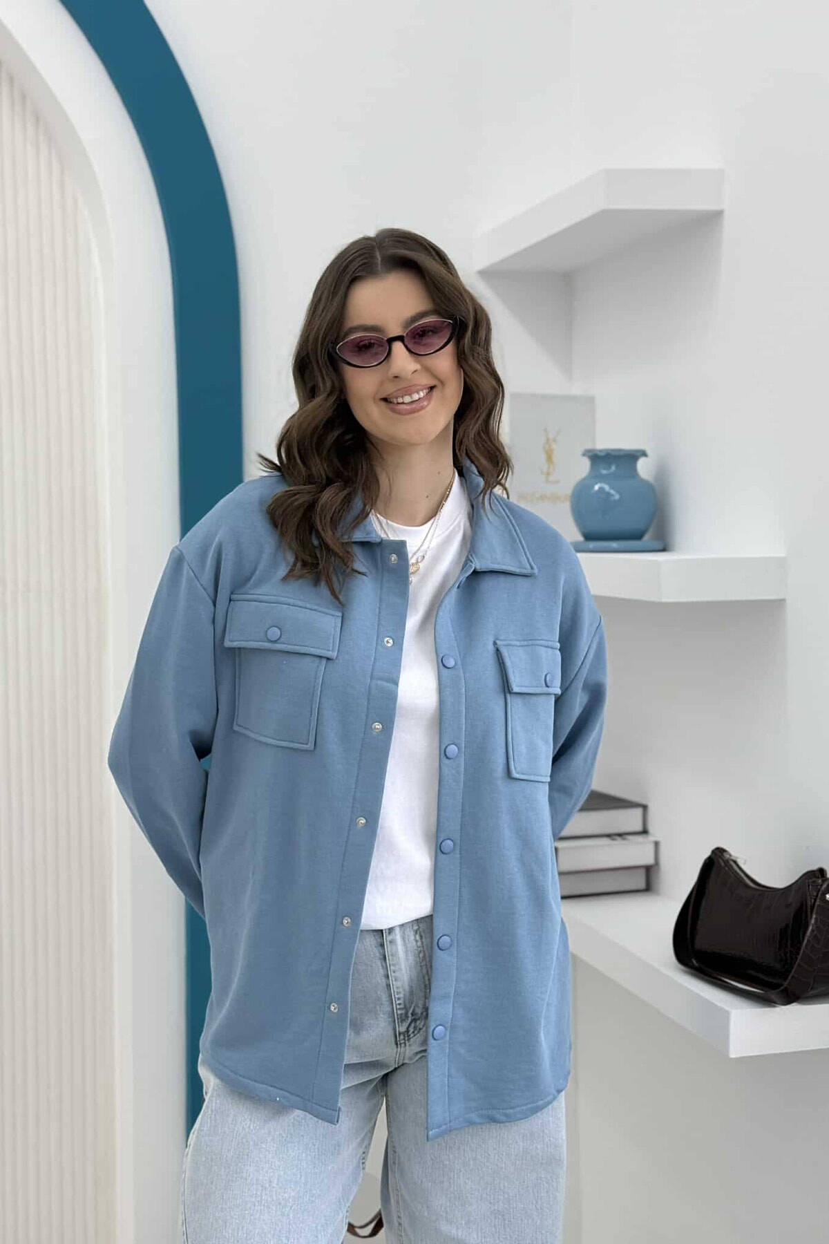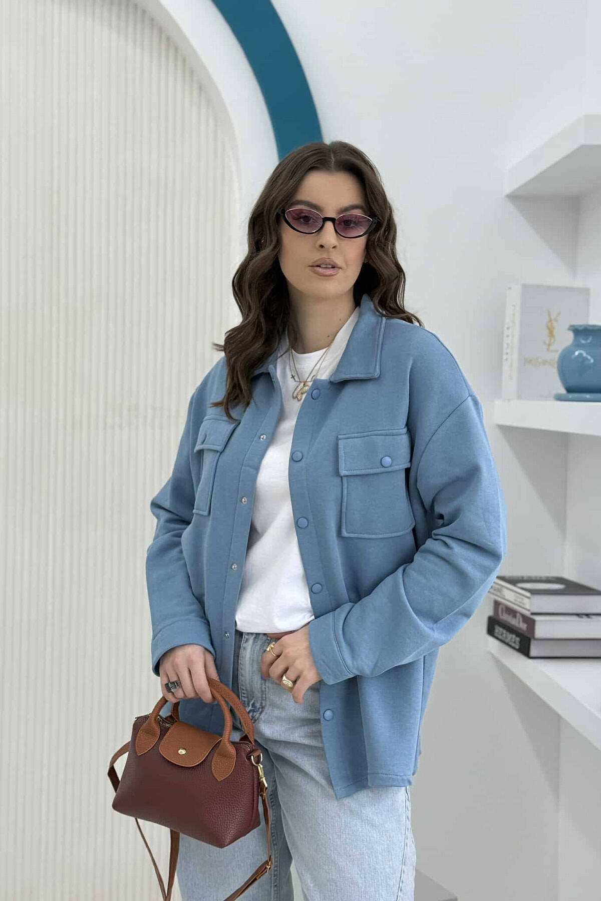 TWO POCKETS BUTTONED WOMEN JACKET LIGHTBLUE/BZ