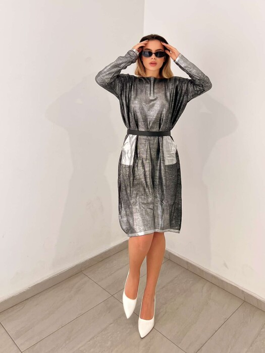 TWO POCKETS DETAIL SHINY WOMEN DRESS SILVER/ARGJEND