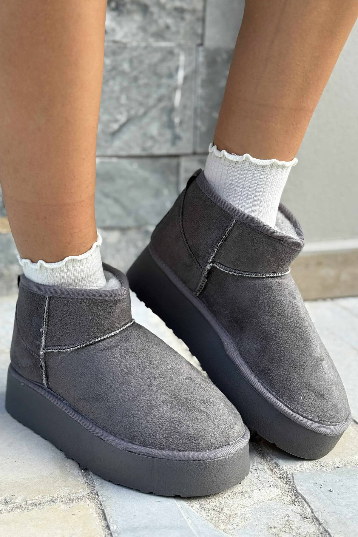 UGG Te Shkurtra Me Platforme Te Larte Per Femra Ne Ngjyren Gri