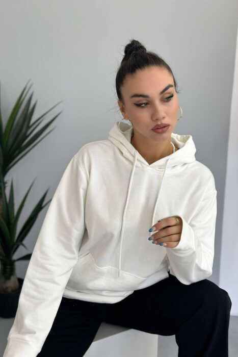 UNISEX ONE COLOR SIMPLE HOODIE WHITE-E BARDHE