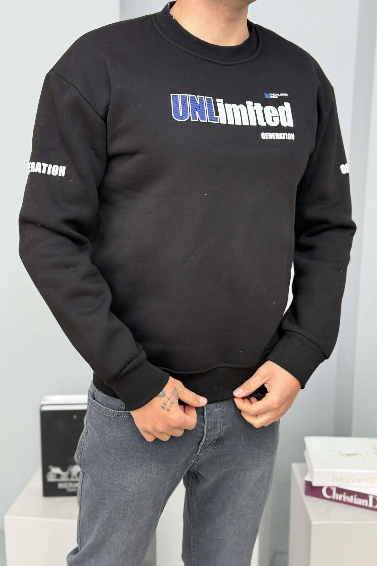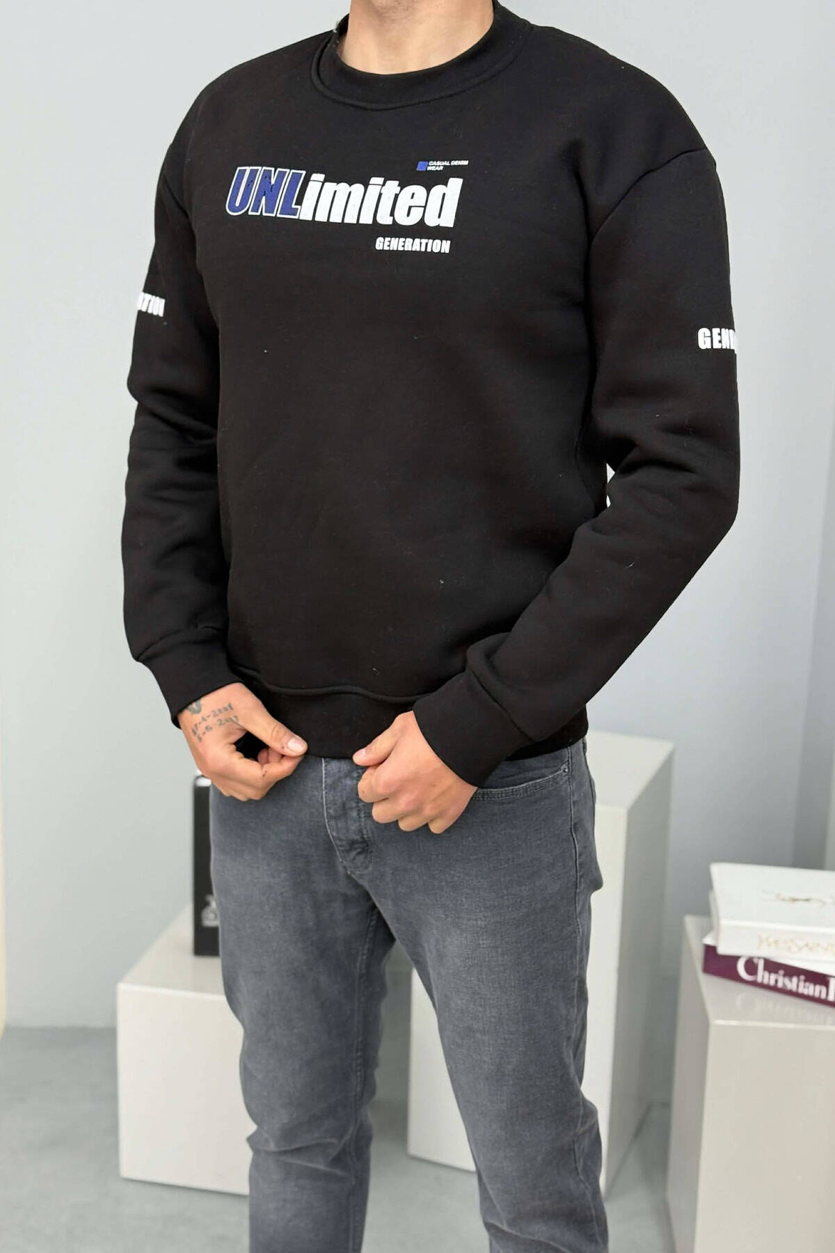 UNLIMITED WRITTING FLUFFY MEN SWEATSHIRT BLACK/ E ZEZE