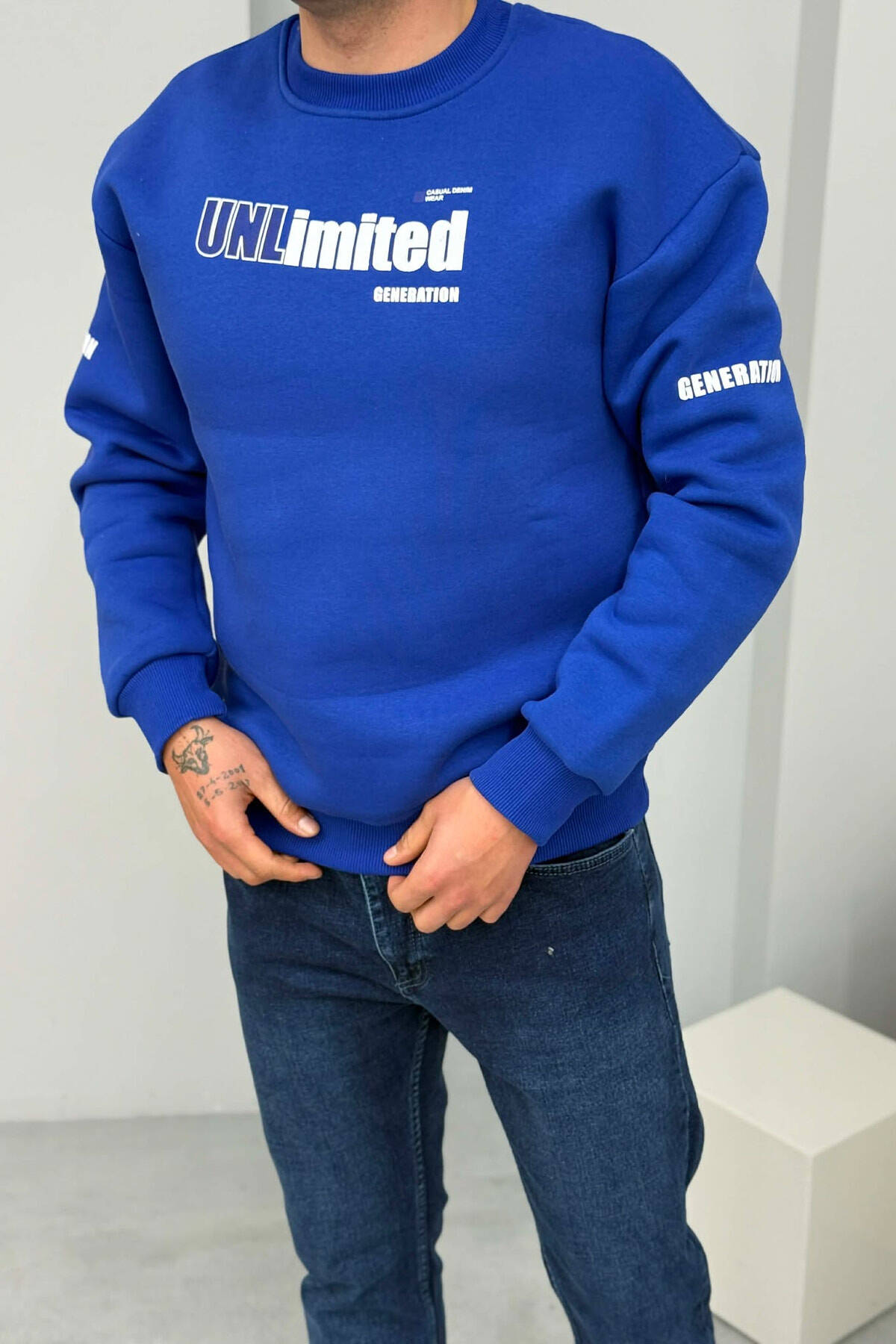 UNLIMITED WRITTING FLUFFY MEN SWEATSHIRT BLUE/BLU