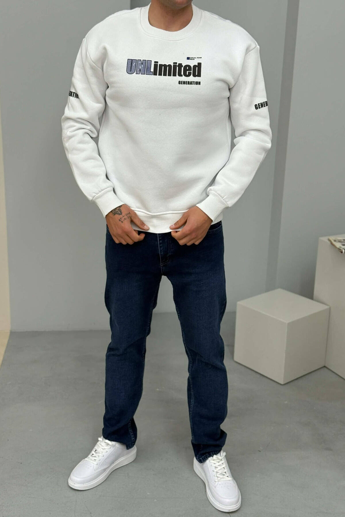 UNLIMITED WRITTING FLUFFY MEN SWEATSHIRT WHITE-E BARDHE
