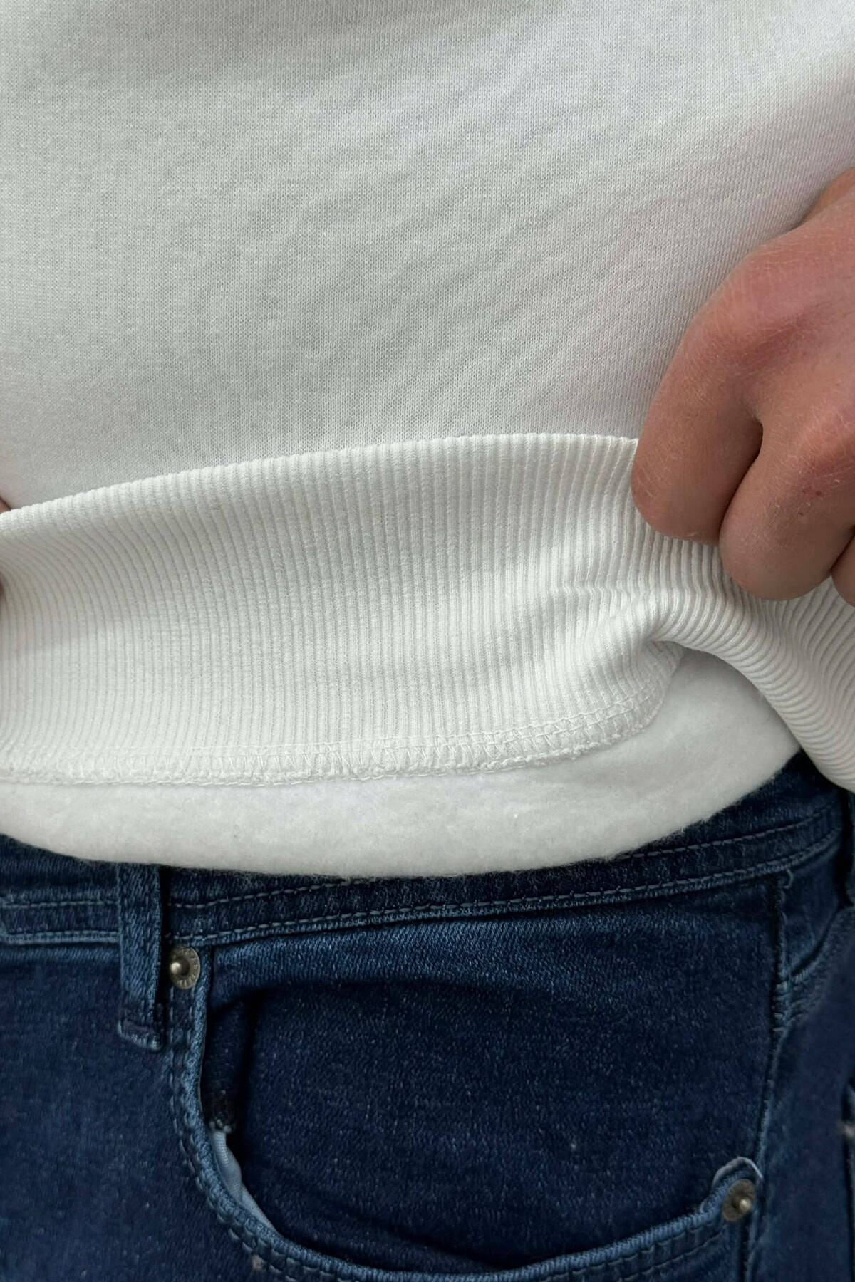 ZIPPER NECK FLUFFY MEN SWEATSHIRT WHITE-E BARDHE