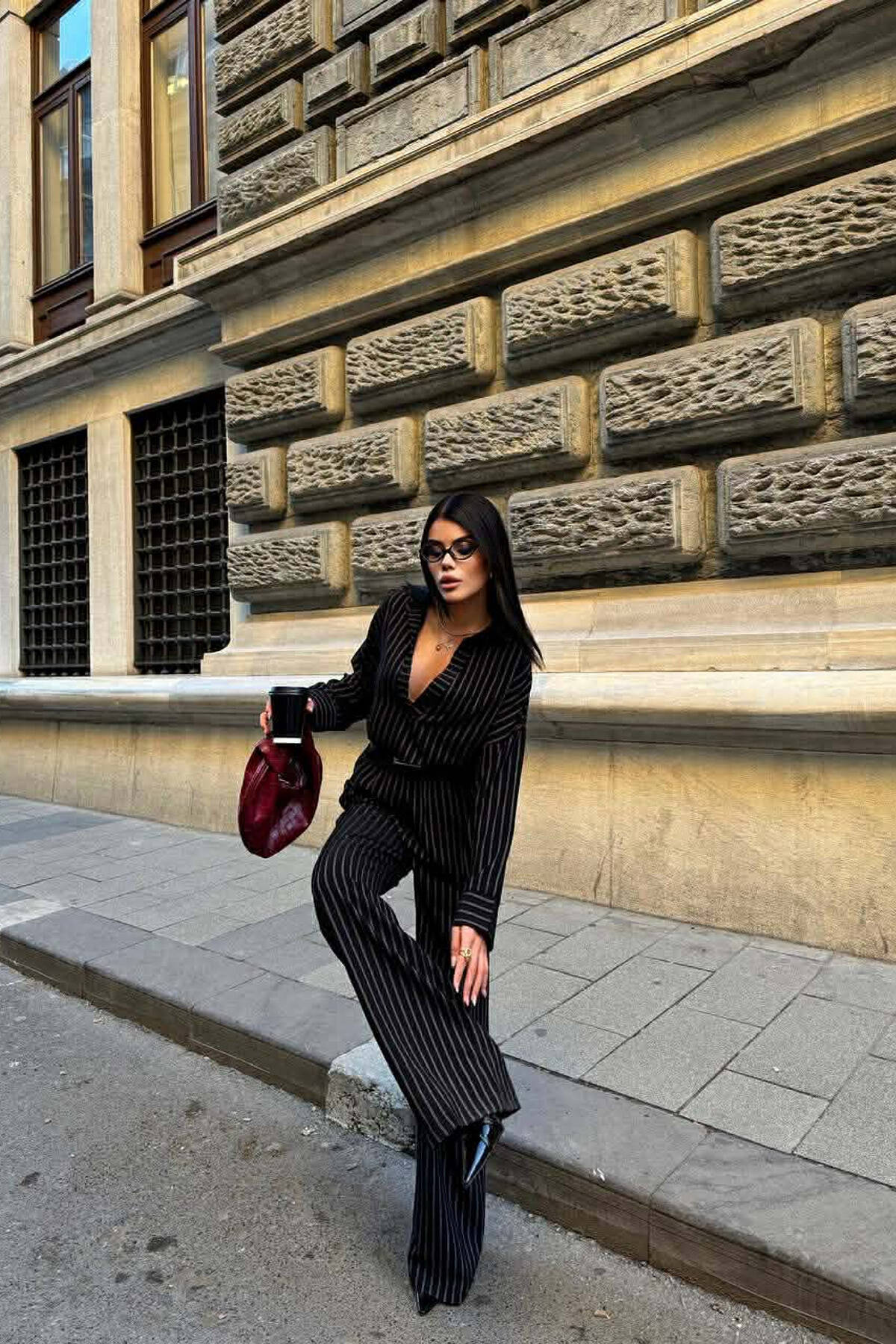 ONE COLOR SHIRT + WIDE LEG TROUSERS WOMAN SET BURGUNDY/VISHNJE
