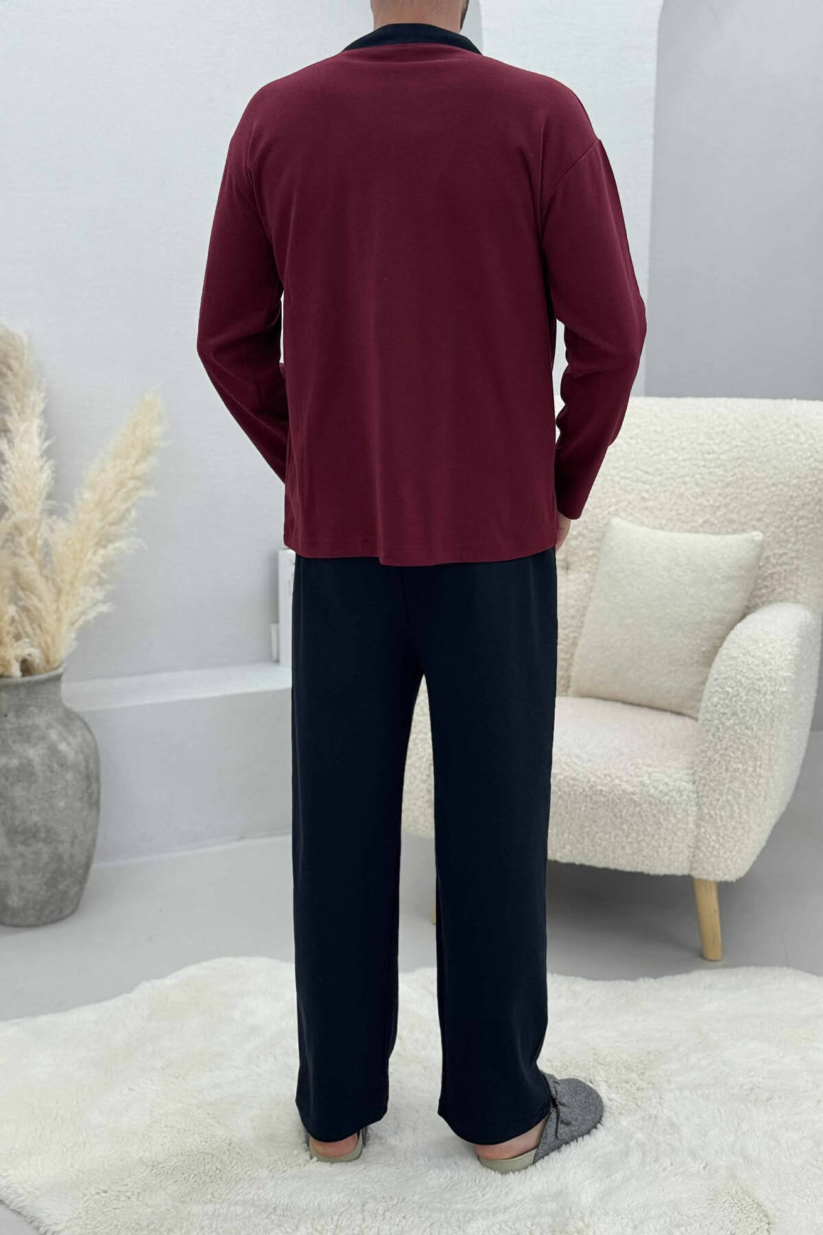 V NECK RHOMBUS LOGO SWEATSHIRT+SWEATPANTS MEN PYJAMAS BURGUNDY/VISHNJE