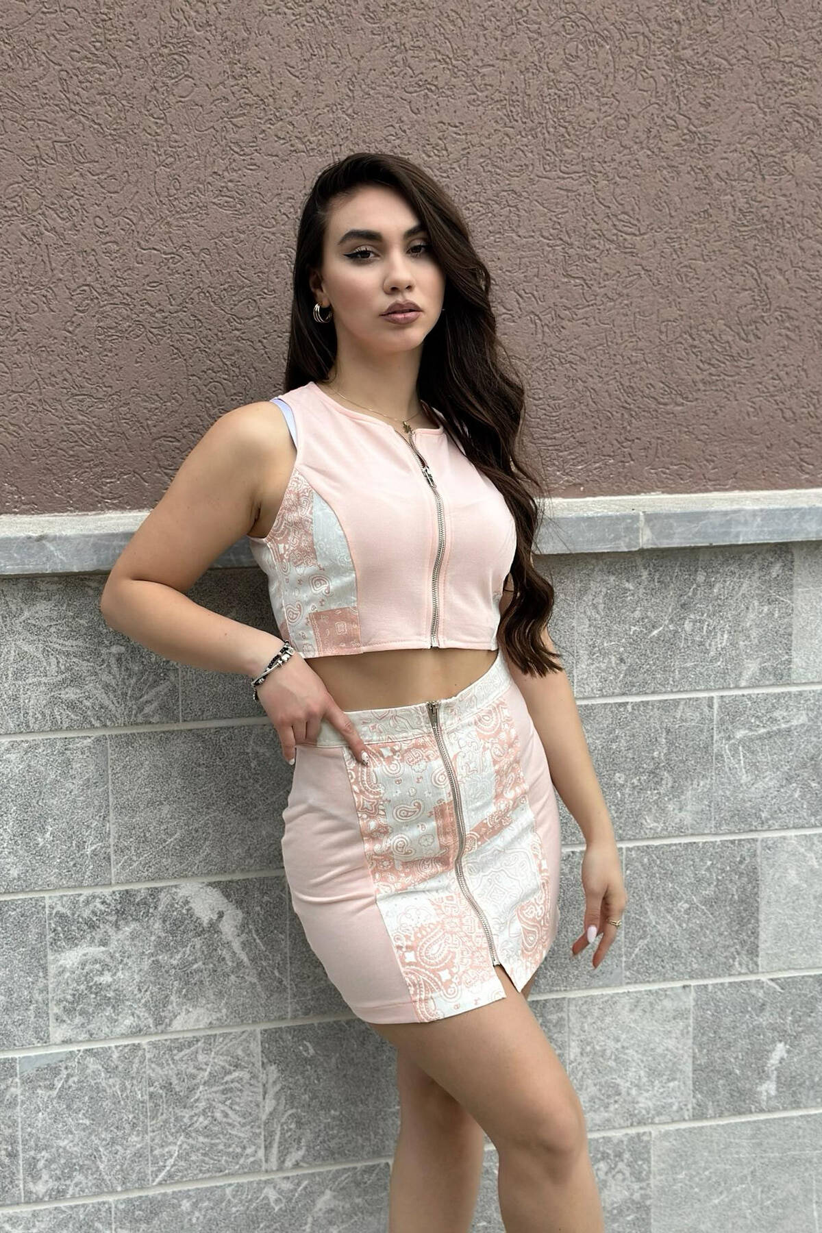 ONE COLOR CROPPED JACKET+SKIRT WOMEN SET LIGHT GREY/GZ