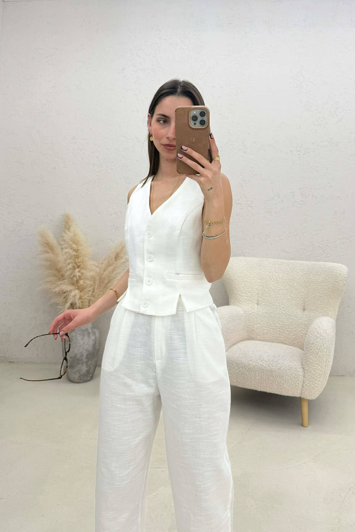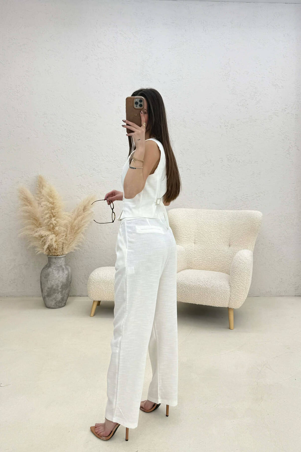 SET NJË NGJYRËSH JELEK+PANTALLONA PËR FEMRA NË NGJYRËN E BARDHË