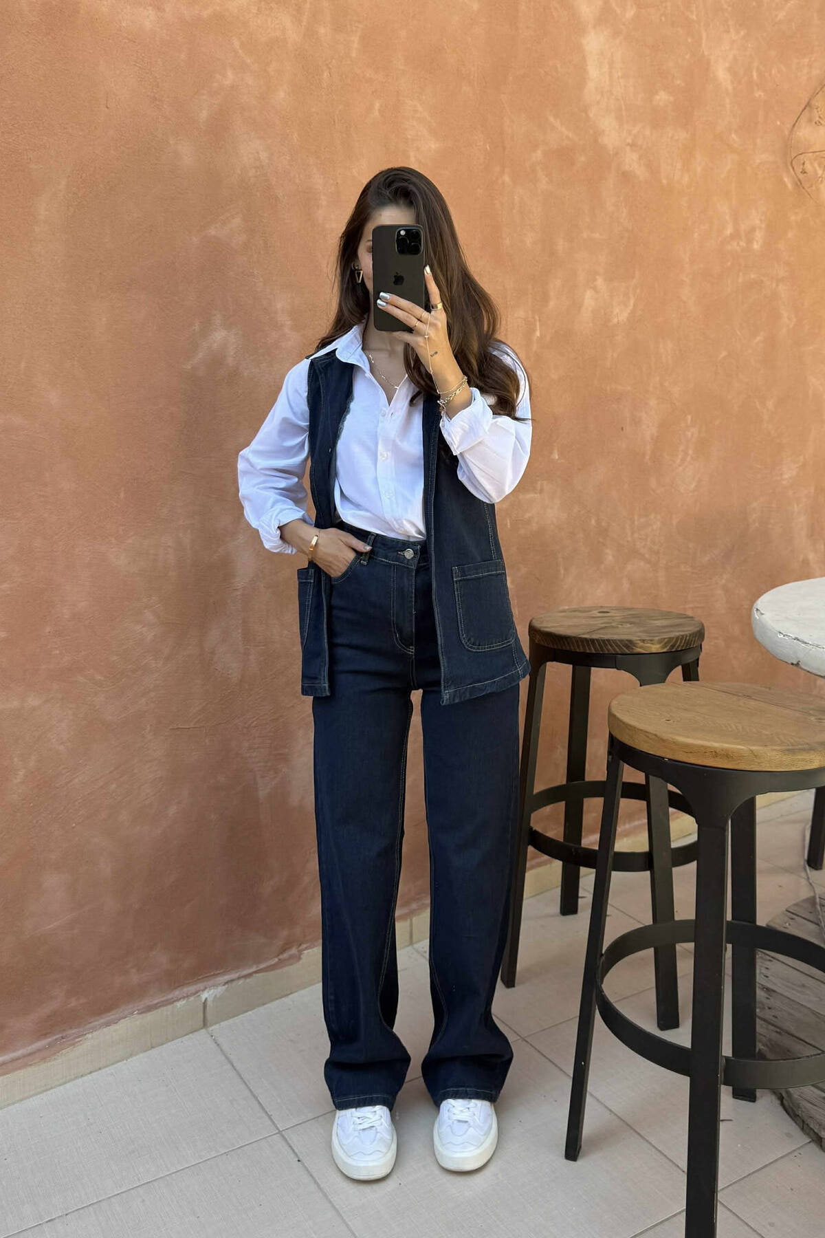 VEST+TROUSERS LACING DETAIL DENIM WOMEN SET BLUE/BLU