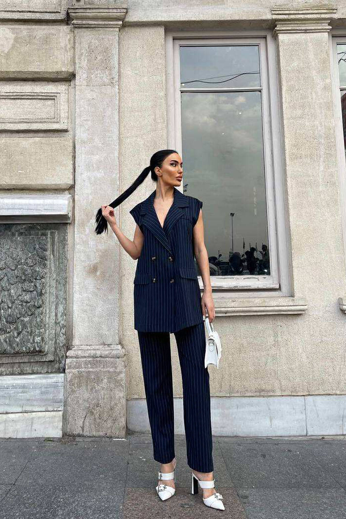 VEST+TROUSERS STRIPED WOMEN SET DARK BLUE/BEE