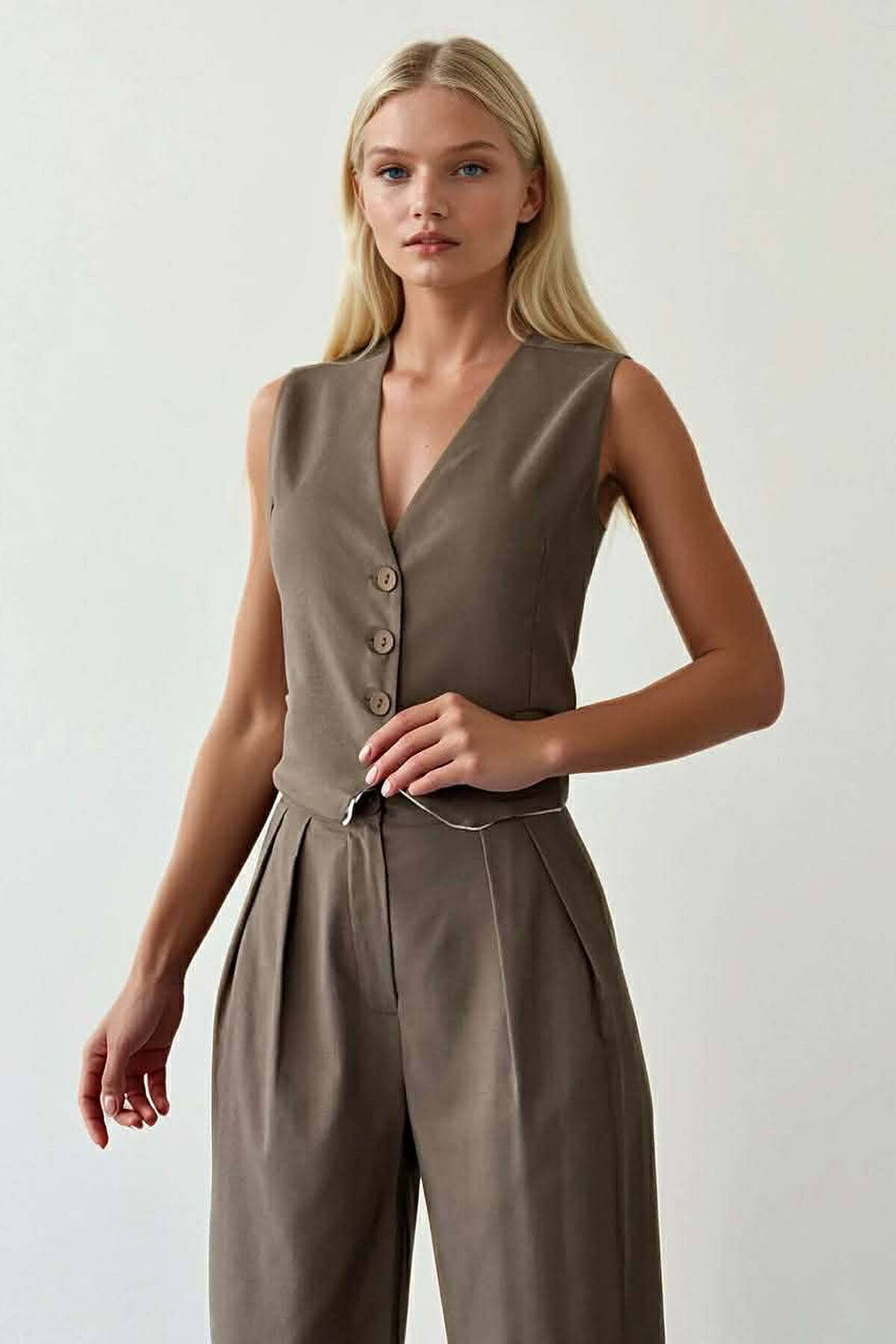 VEST+TROUSERS ONE COLOR WOMEN TWO PIECE SET DARK BROWN/KAE
