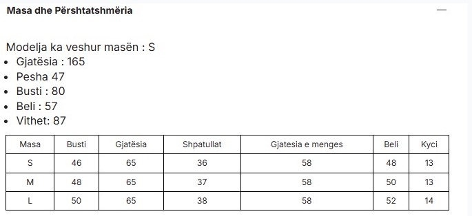 Size chart
