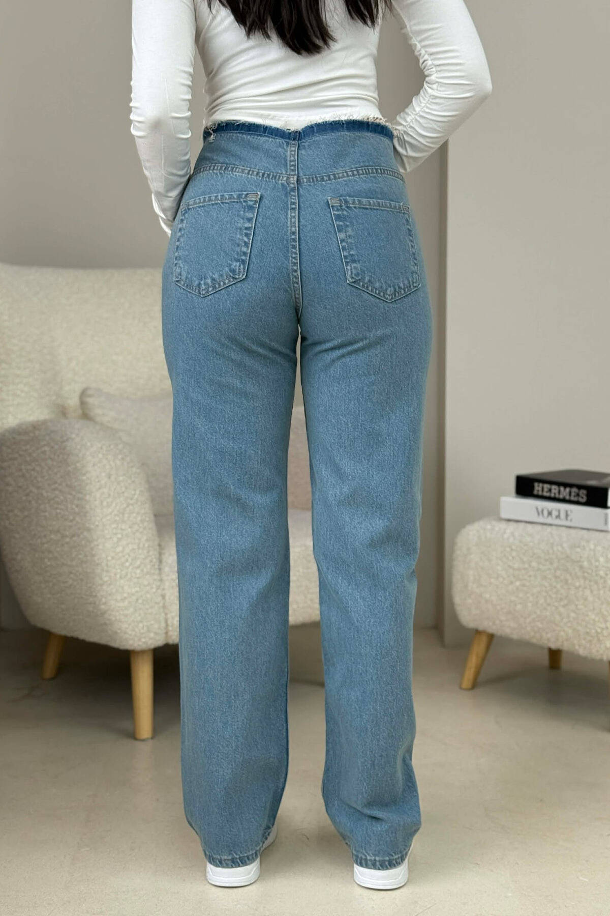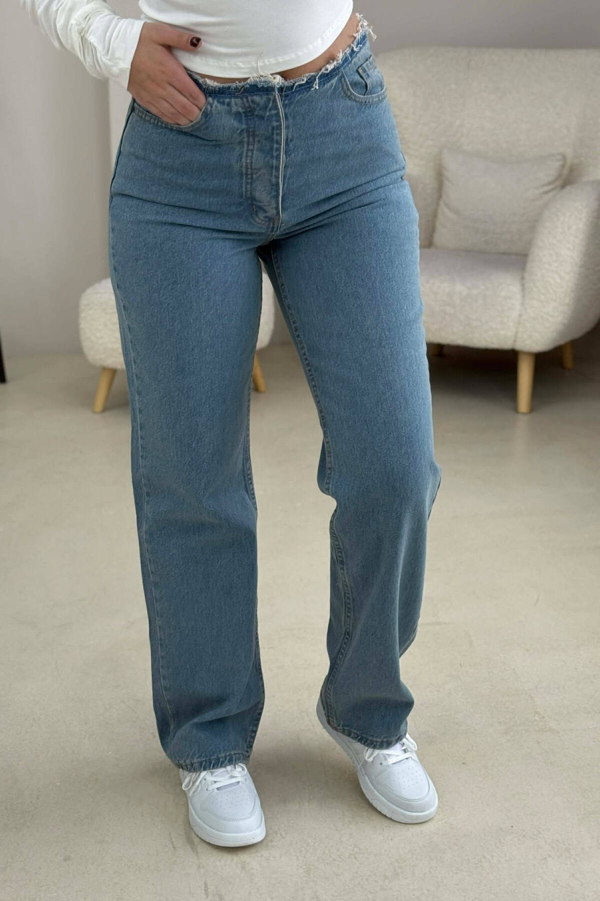 BELT DETAIL SIMPLE WOMAN JEANS WHITE-E BARDHE