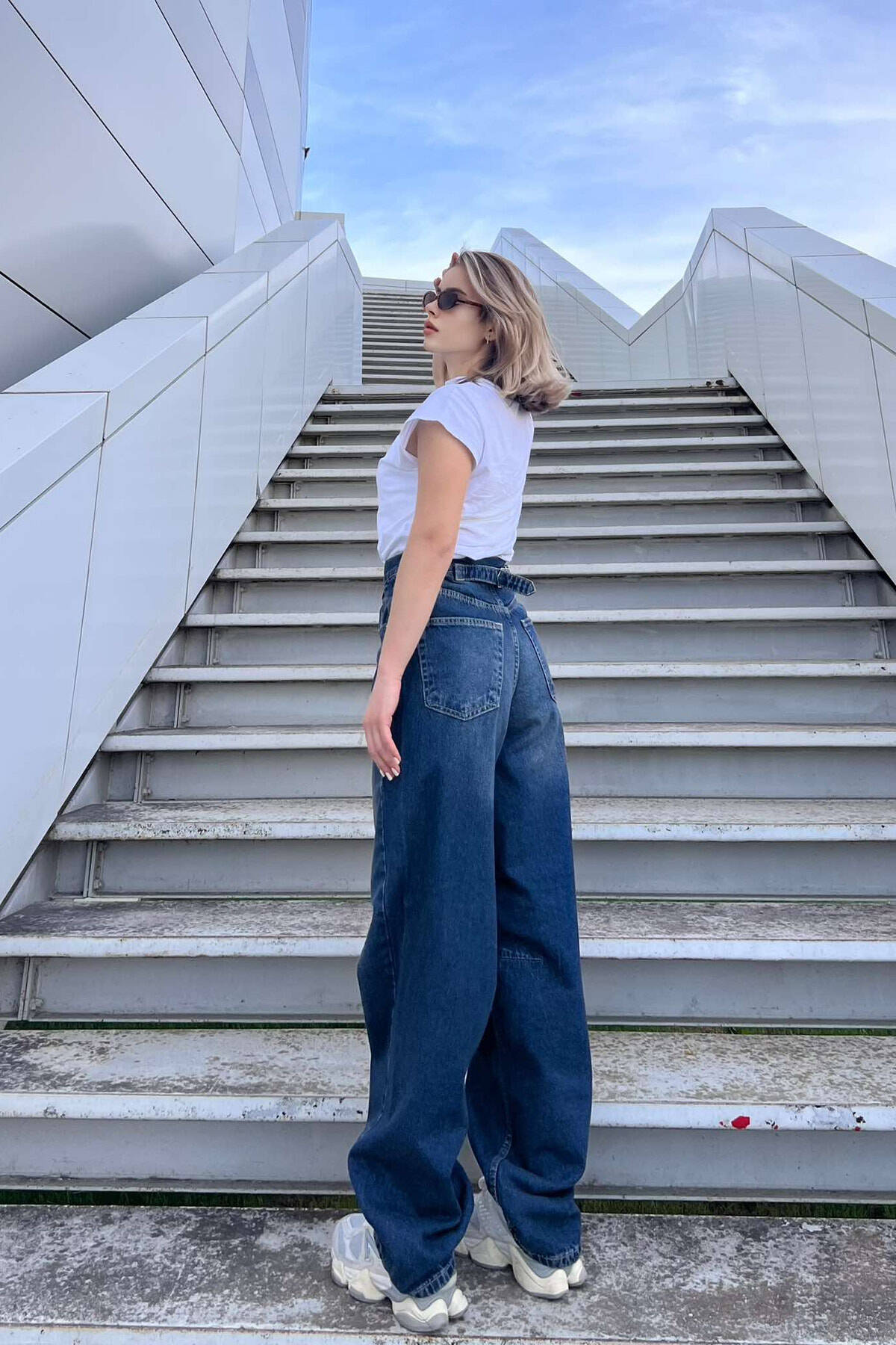 WIDE LEG BELTED WOMEN JEANS BLUE/BLU