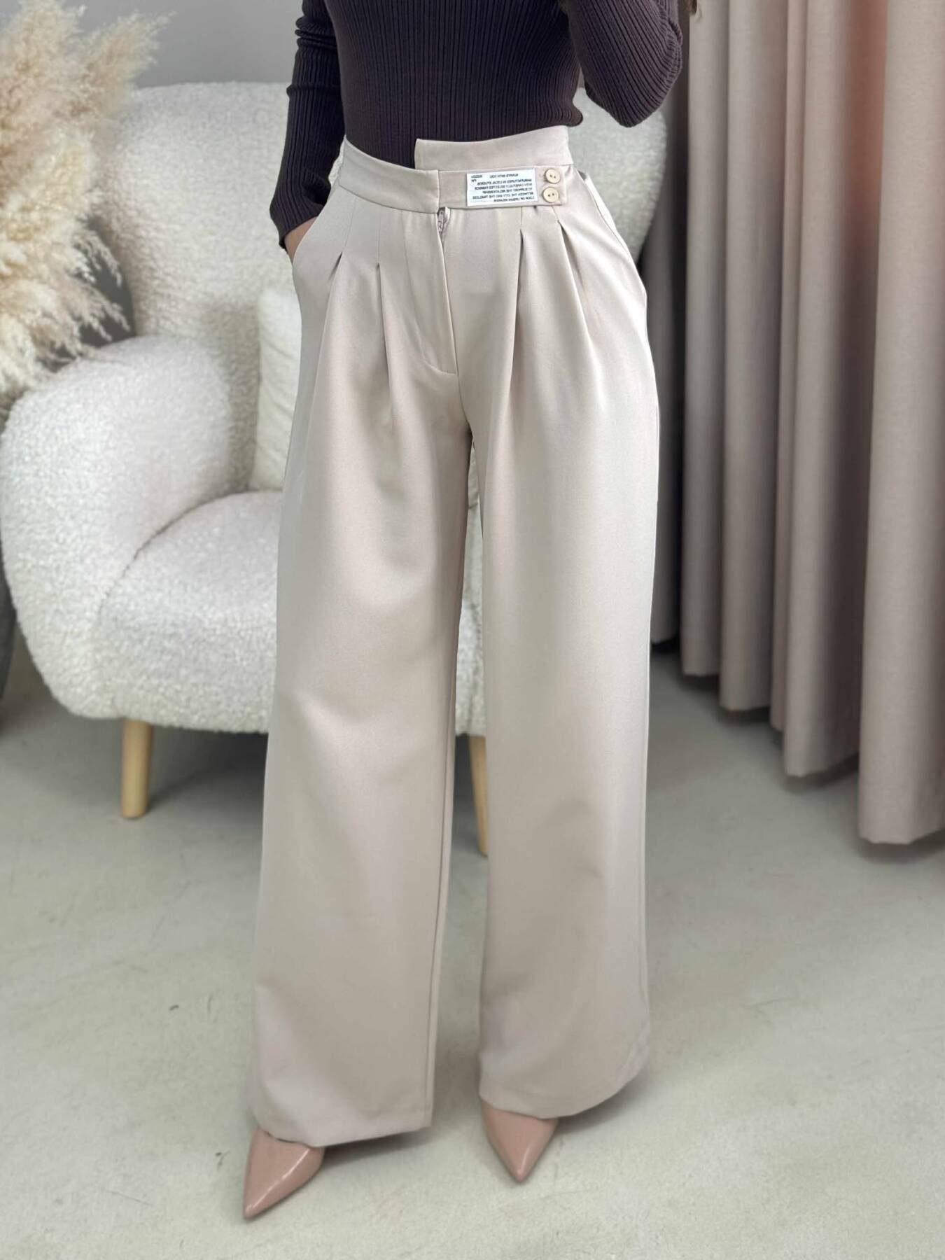 WIDE LEG ONE COLOR WOMAN TROUSERS CREAM/KREM