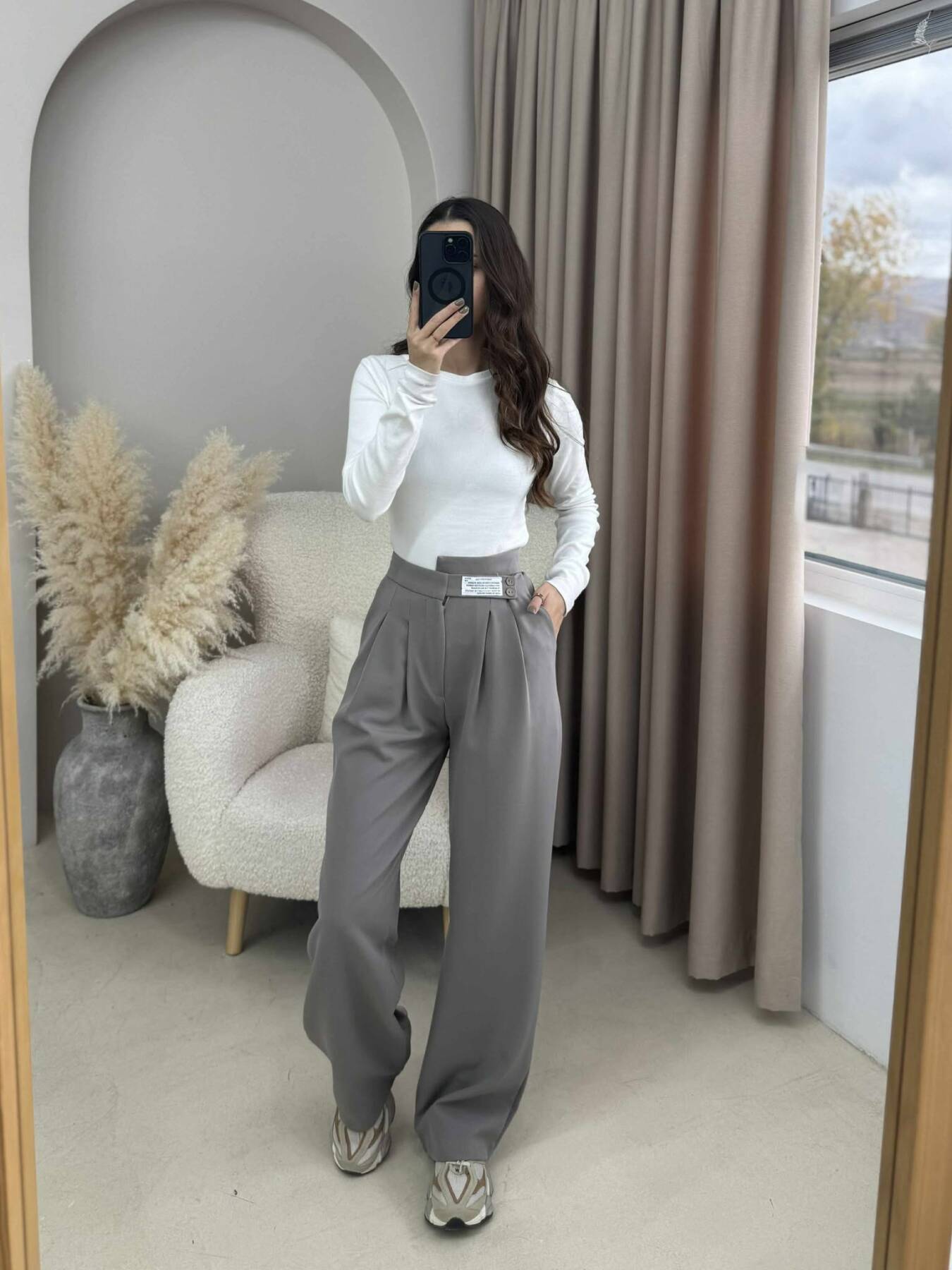 SEMI ELASTIC WIDE LEG WOMEN TROUSERS LIGHT GREY/GZ