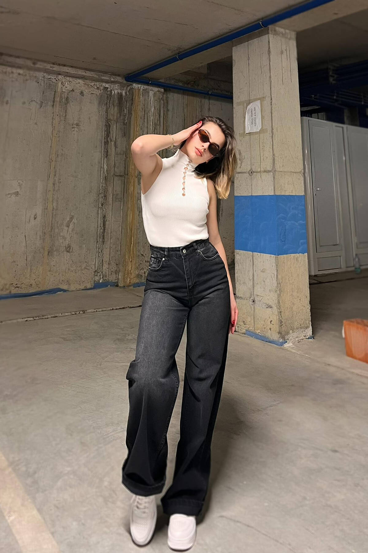 WIDE LEG WOMAN JEANS DARK GREY/GEE