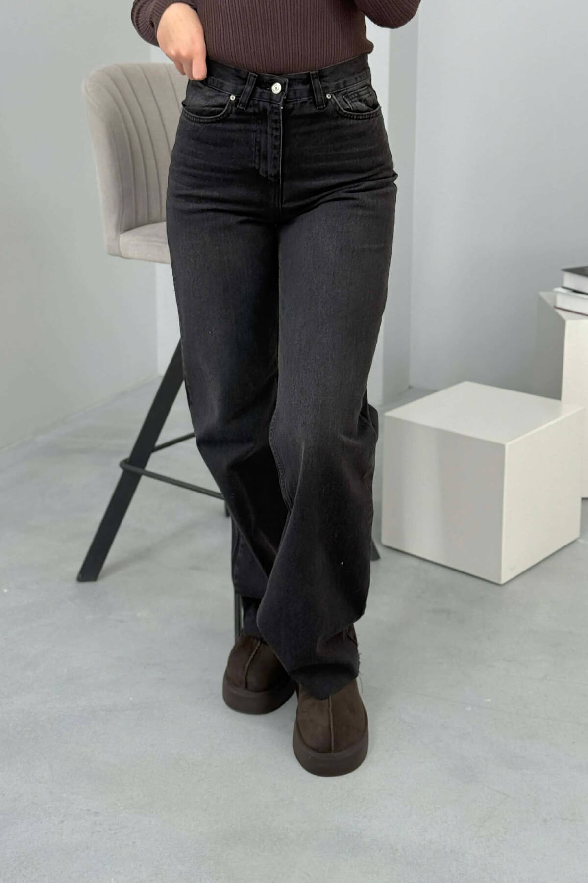 WIDE LEG WOMEN JEANS DARK GREY/GEE