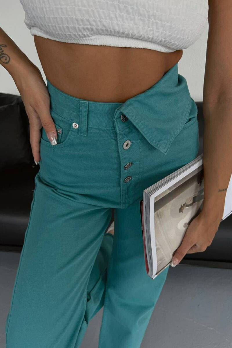 SIMPLE ONE COLOR WOMEN JEANS DARK GREEN/JEE