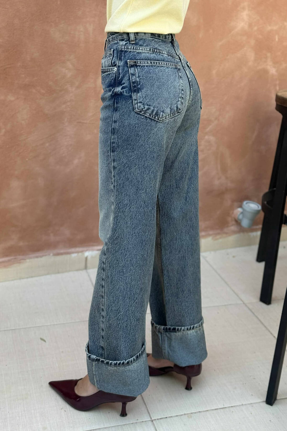 WIDE LEG ONE COLOR WOMEN JEANS DARK BLUE/BEE
