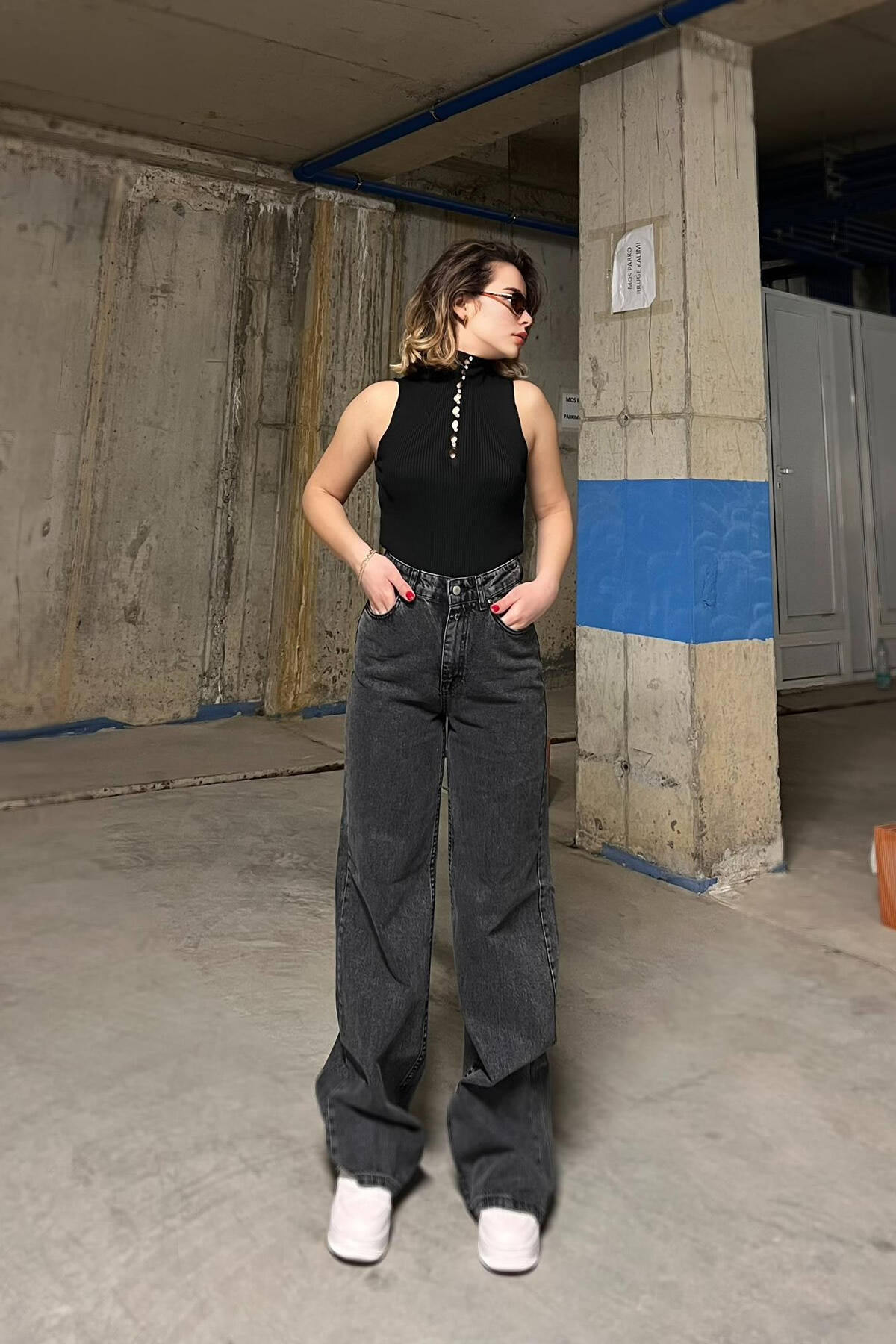 WIDE LEG WOMAN JEANS DARK GREY/GEE