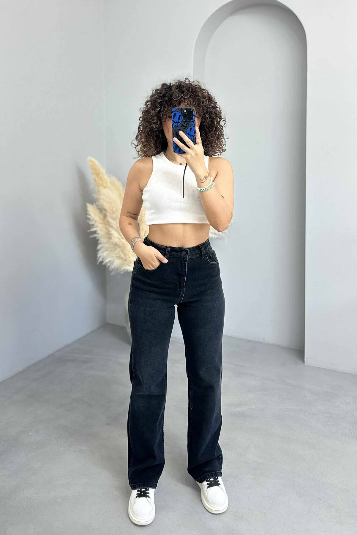 WIDE LEG ONE COLOR WOMEN JEANS IN BLACK COLOR