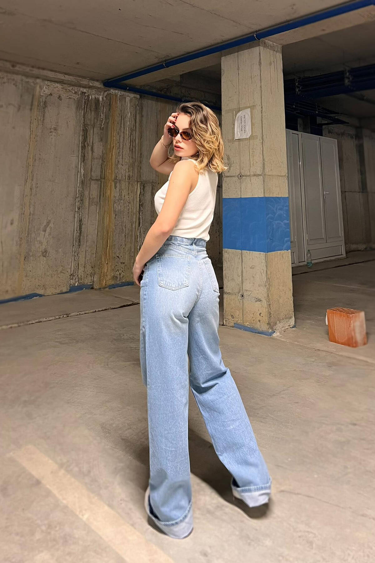 BELT DETAIL WIDE LEG WOMAN JEANS LIGHTBLUE/BZ