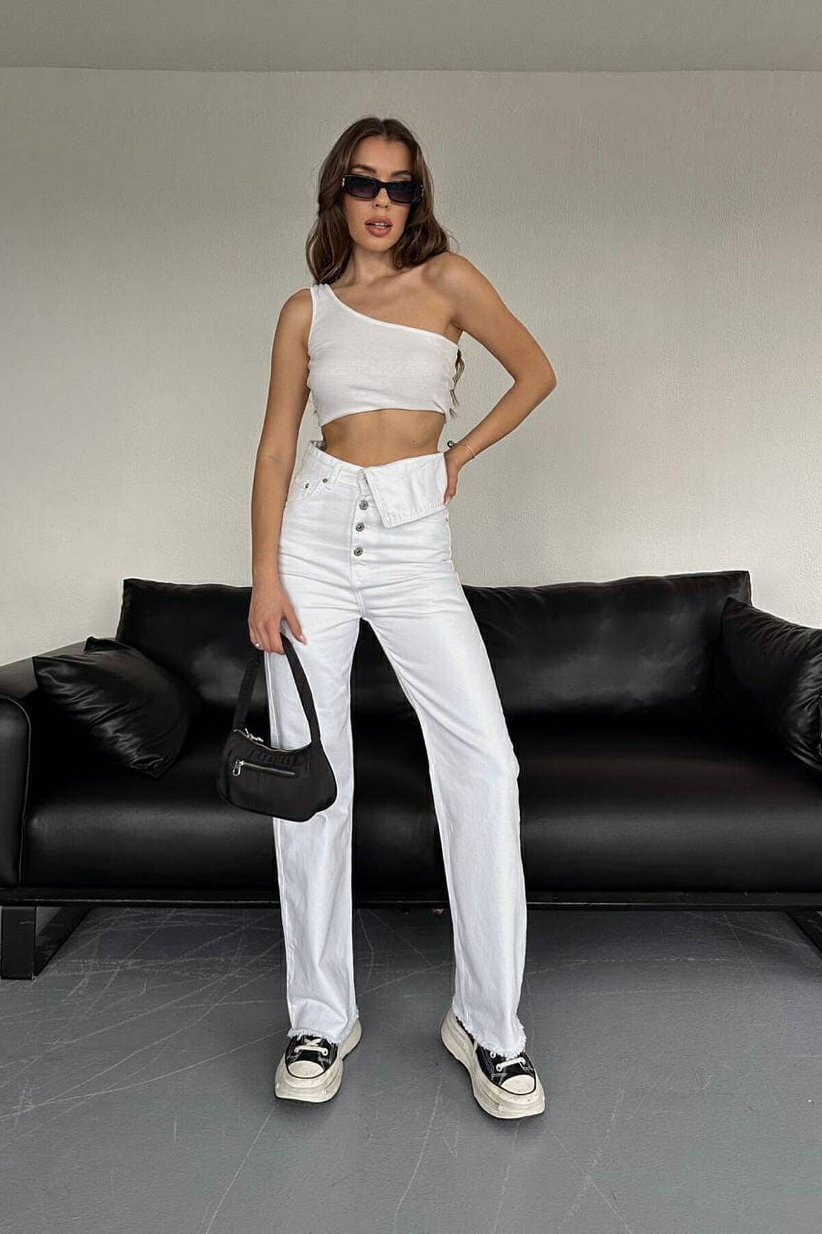 WIDE LEG ONE COLOR WOMEN JEANS WHITE-E BARDHE