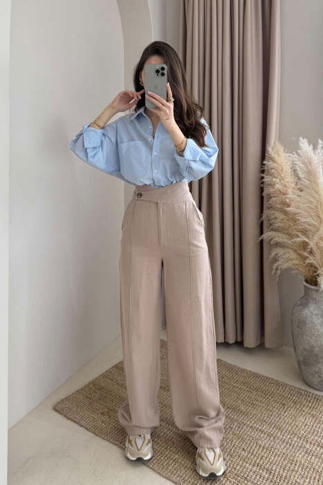 ONE COLOR LEATHER WIDE LEG WOMEN TROUSERS BEIGE/BEZHE