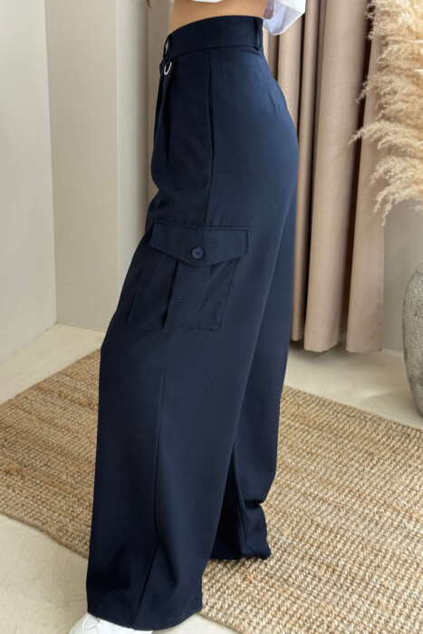 WIDE LEG SIDE POCKETS WOMEN TROUSERS DARK BLUE/BEE