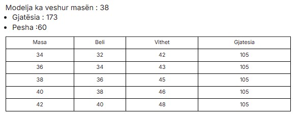 34-XS, 36-S, 38-M, 40-L, 42-XL