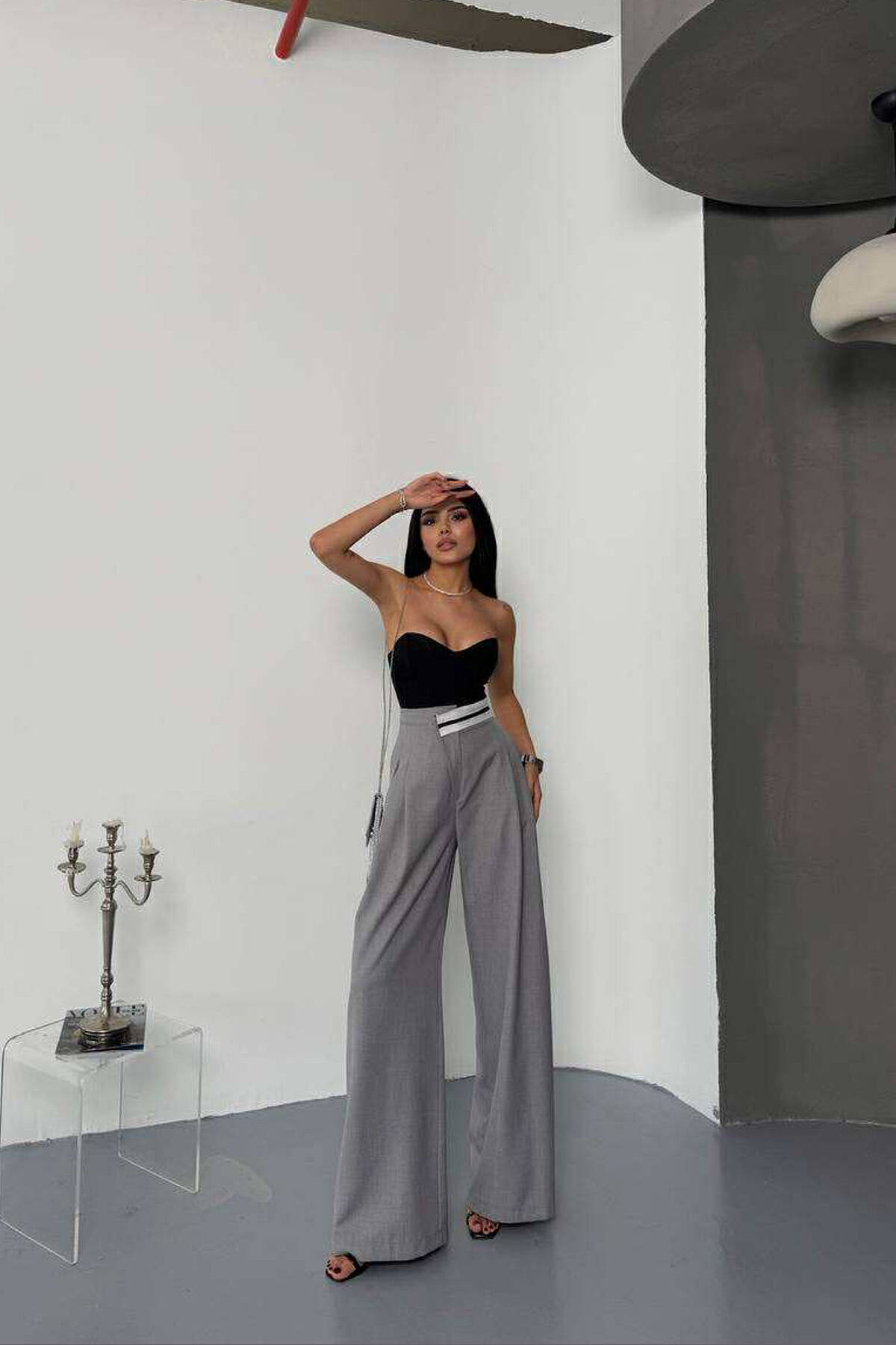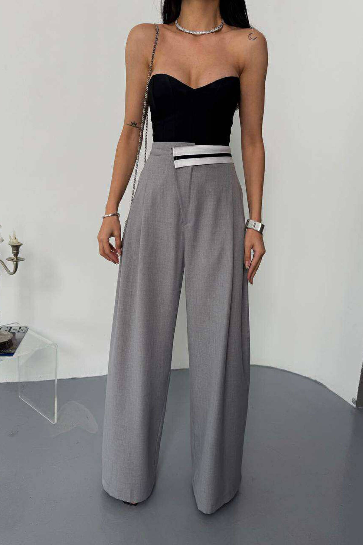 WIDE LEG SIMPLE WOMEN TROUSERS LIGHT GREY/GZ