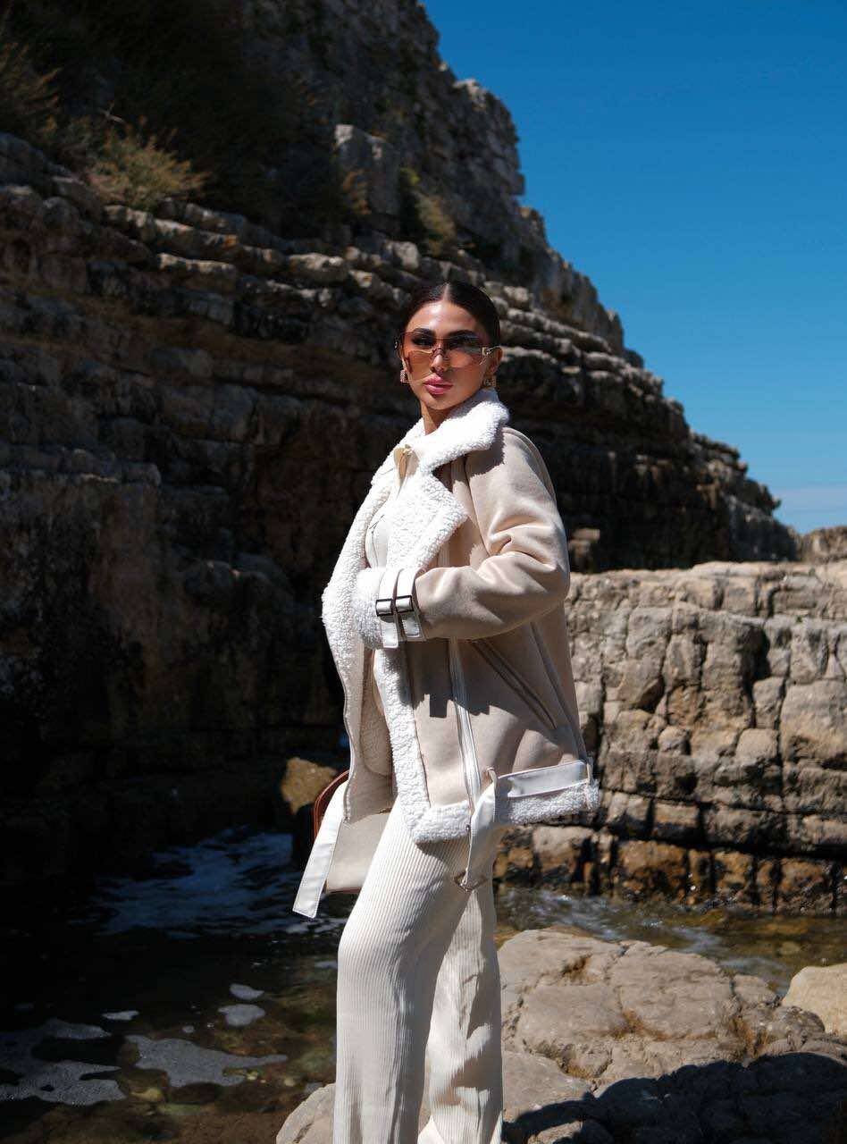 WOOL BELT WOMAN JACKET CREAM/KREM