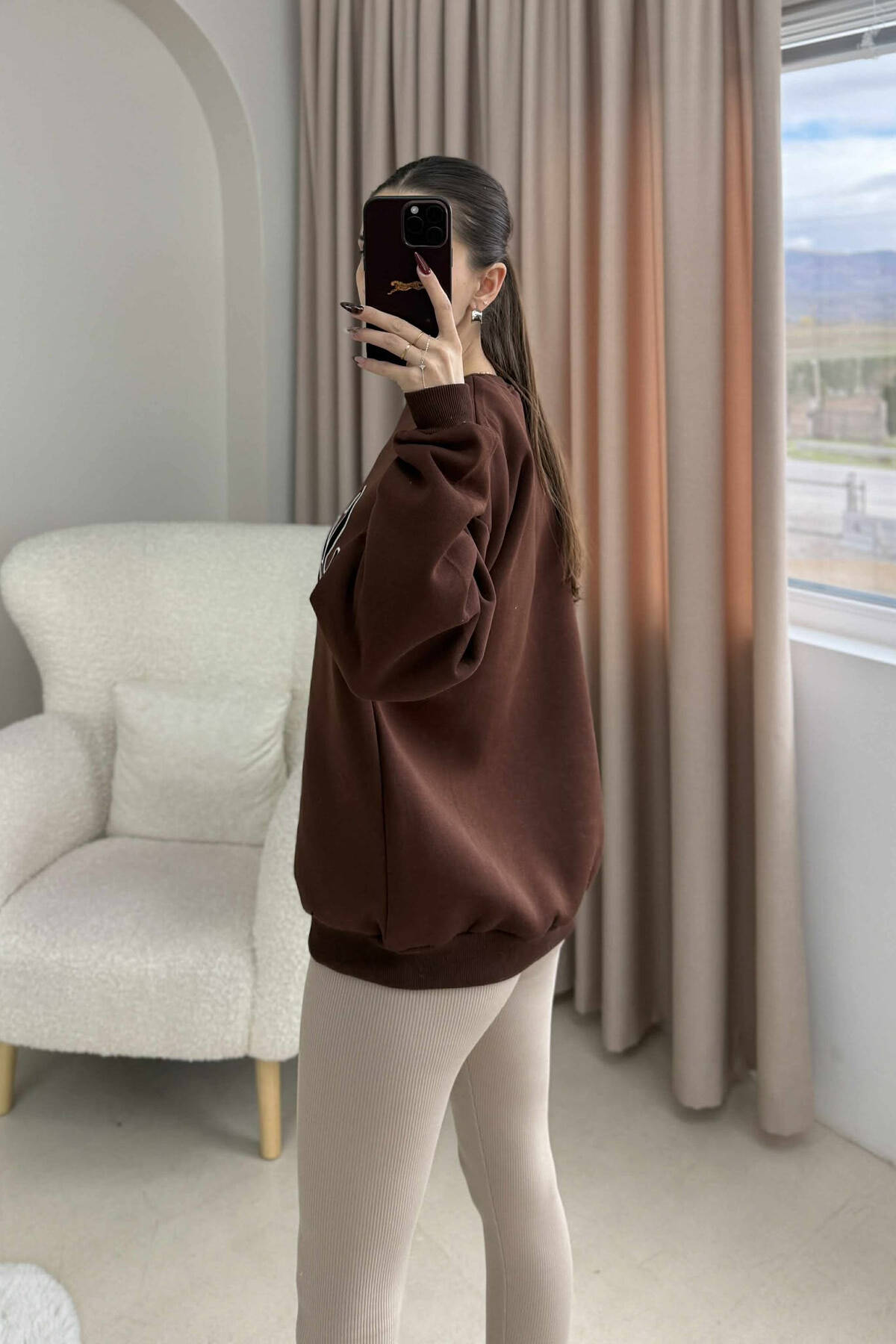 WRITTINGS ROUND NECK FLUFFY WOMEN SWEATSHIRT BROWN/KAFE